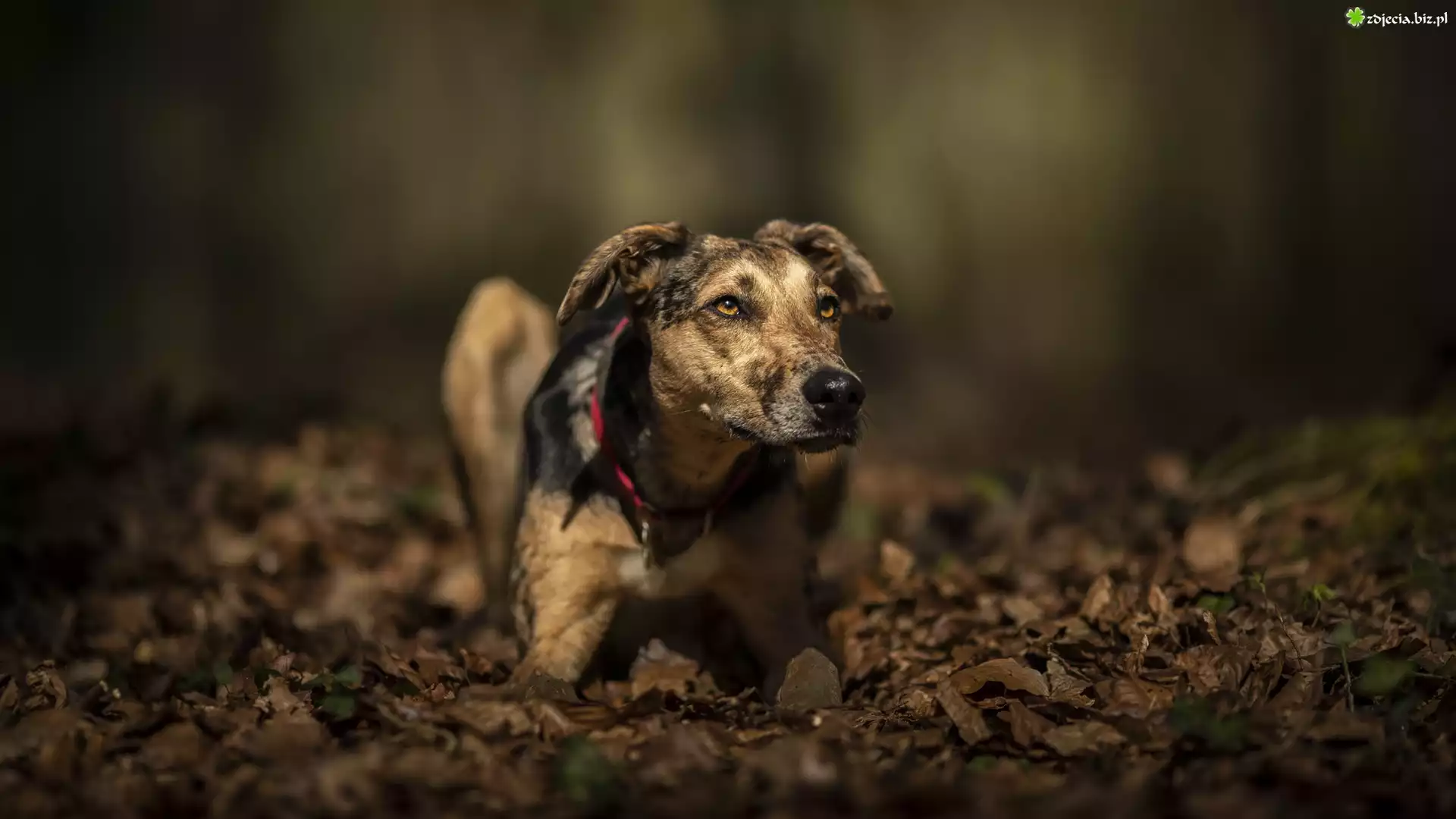 Zdjęcie Pies, Whippet, Mordka, Liście