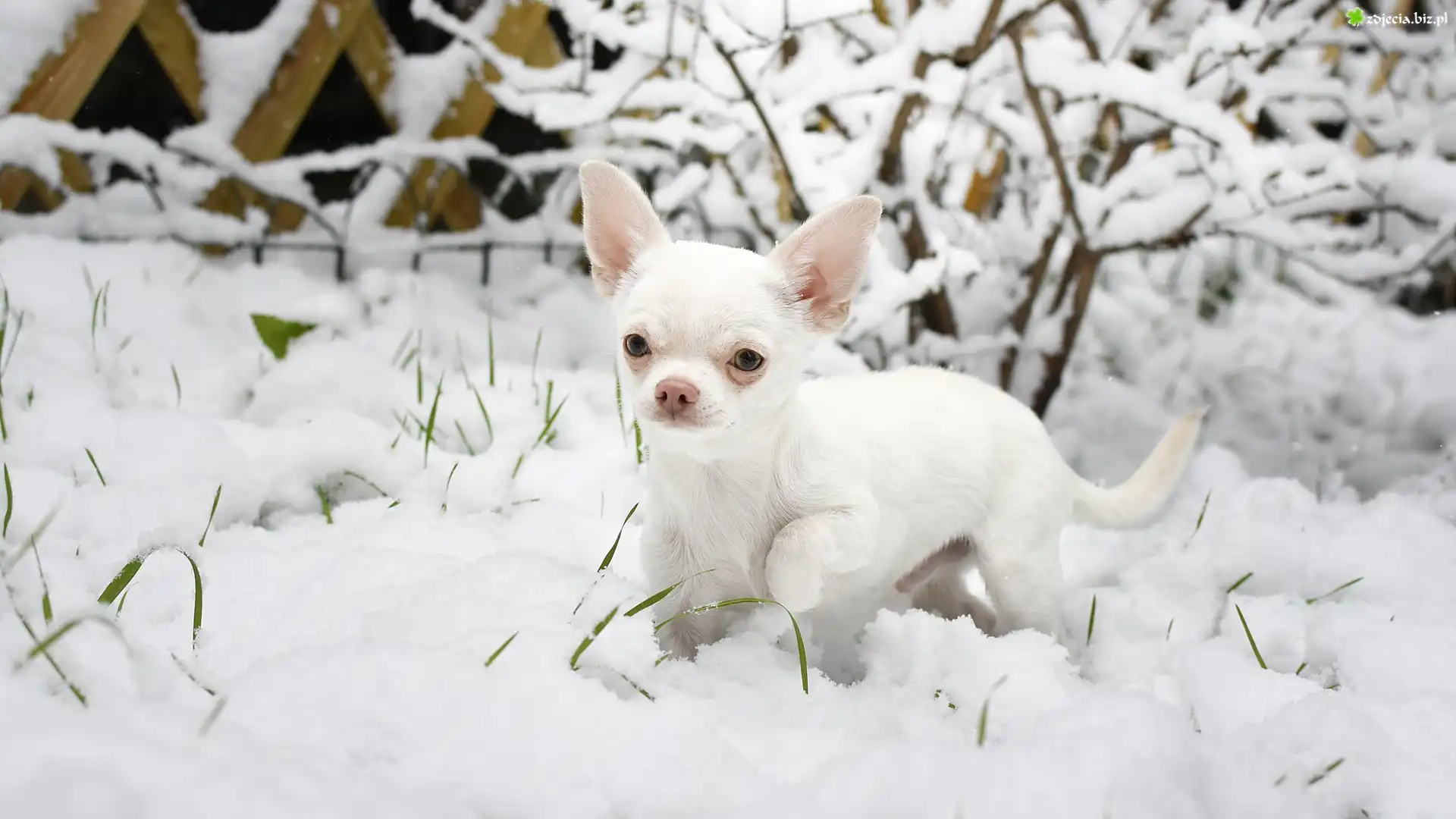 Zdjęcie Pies, Chihuahua krótkowłosa, Śnieg, Krzew