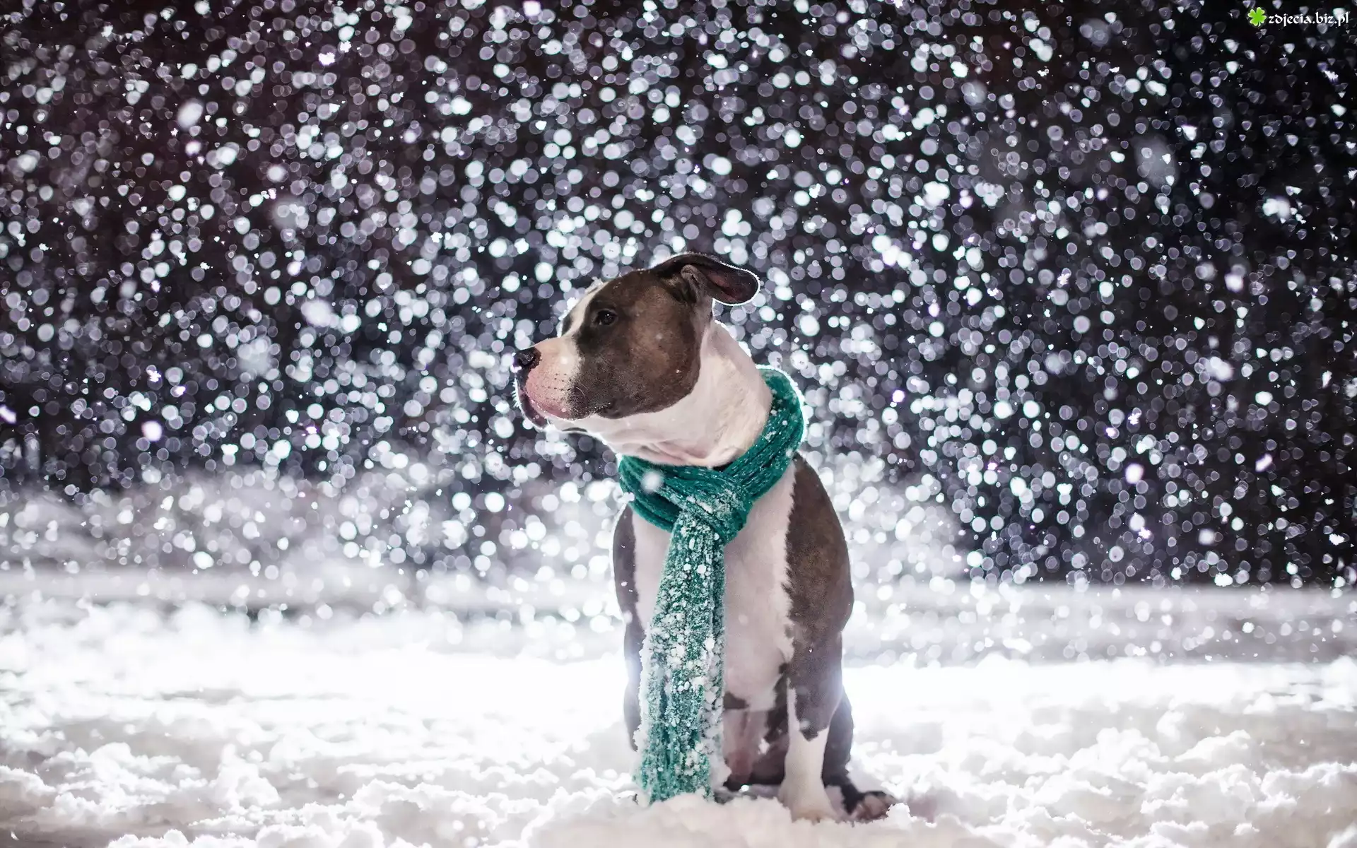 Zdjęcie Pies, Szalik, Śnieg, Zima, Amstaff