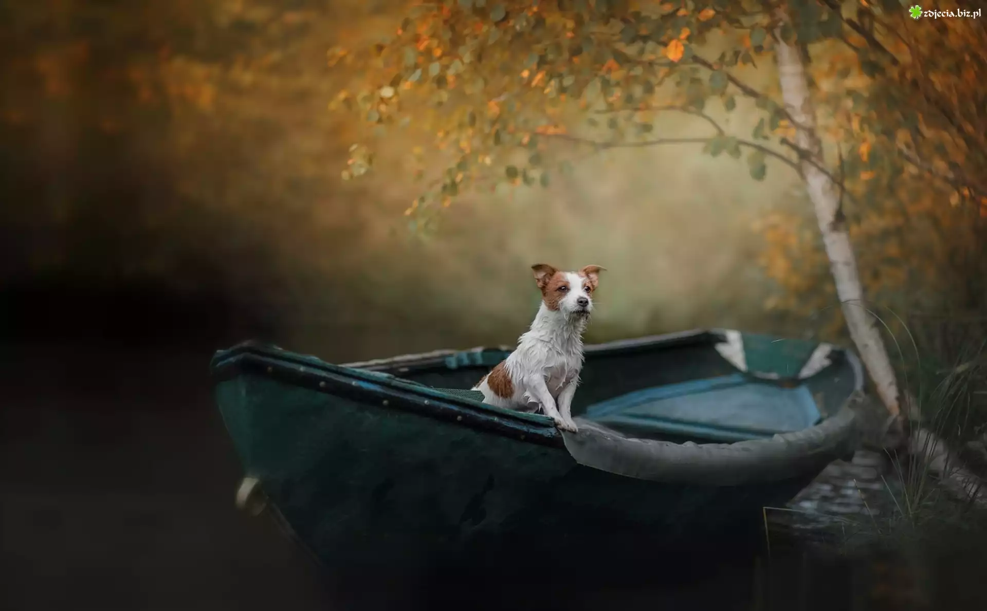 Zdjęcie Pies, Jack Russell terrier, Łódka, Brzoza