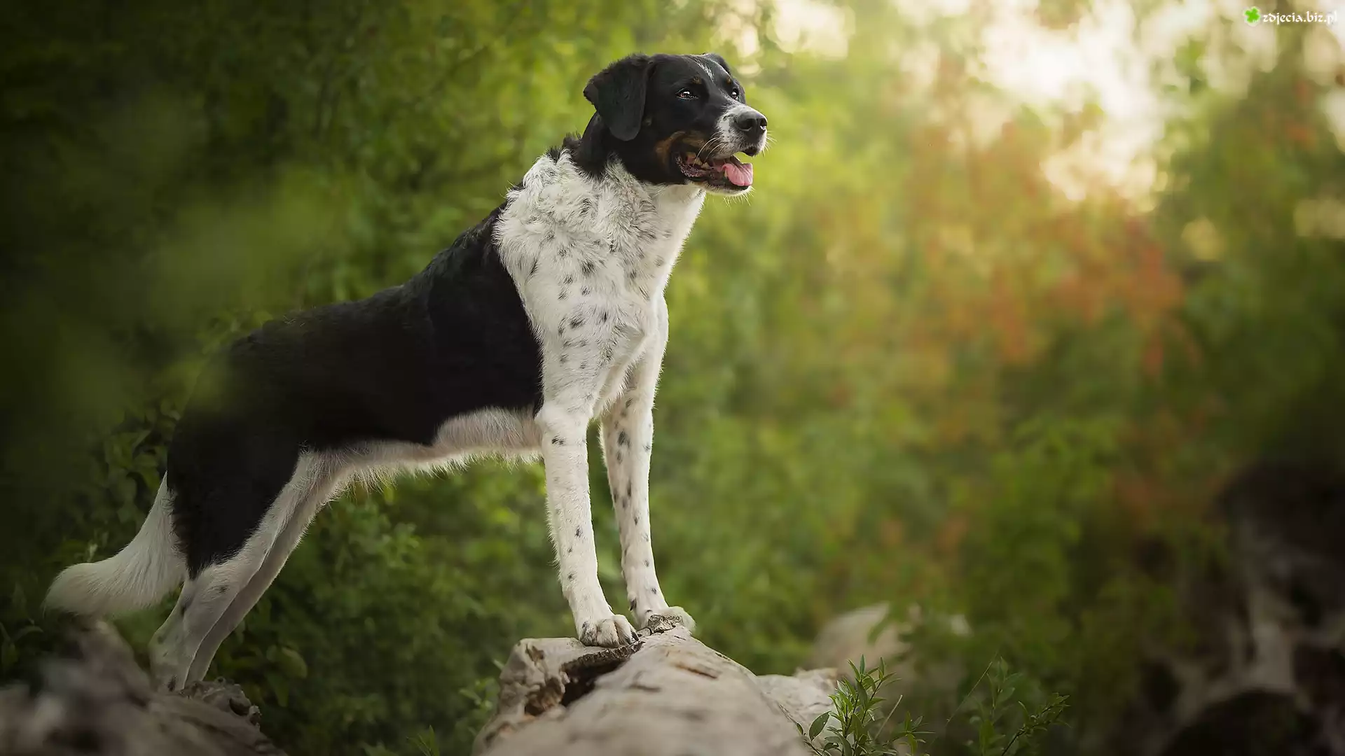 Zdjęcie Pies, Mordka, Postawa, Rośliny, Kamień