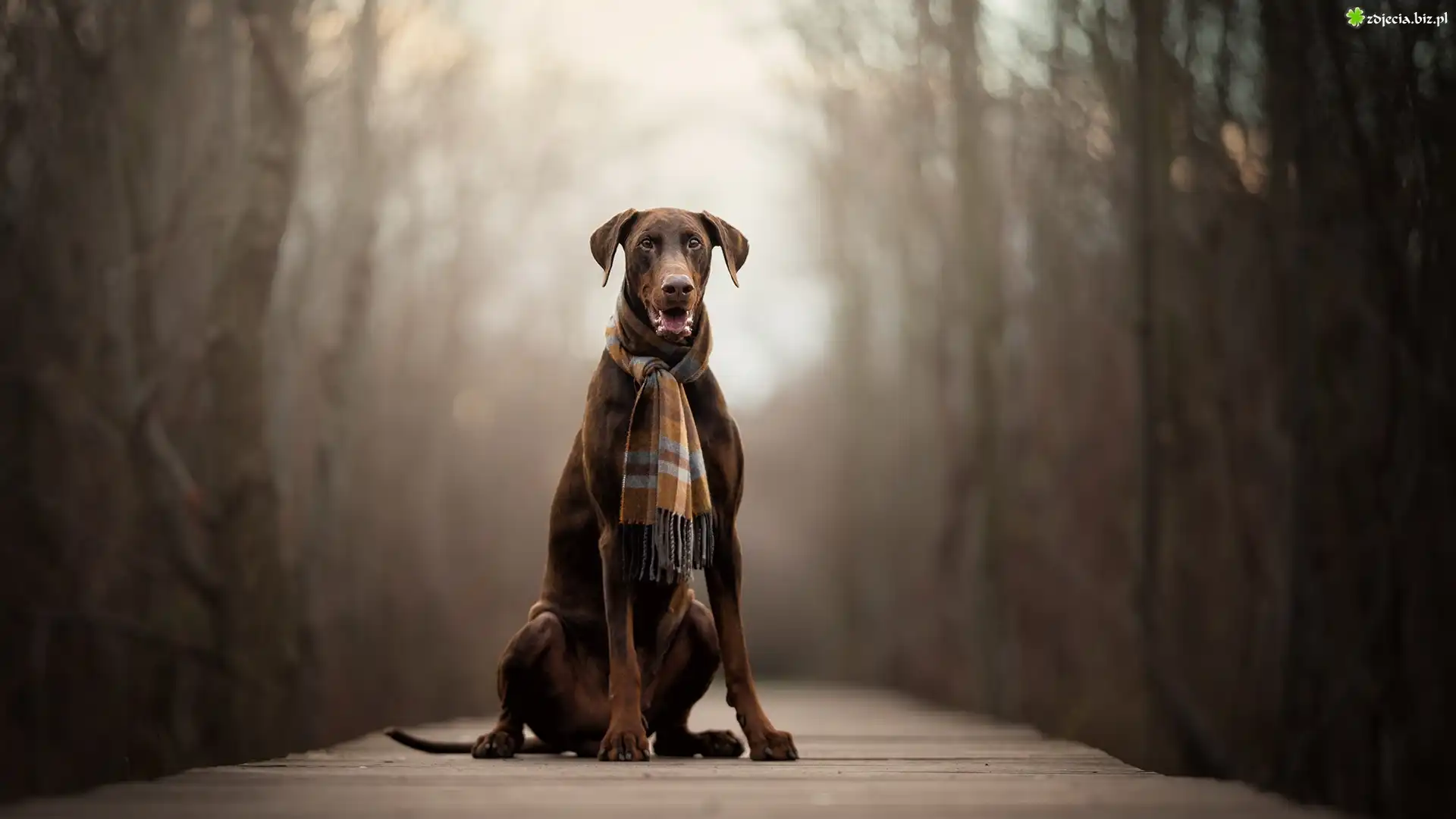 Zdjęcie Pies, Doberman, Szalik, Kładka