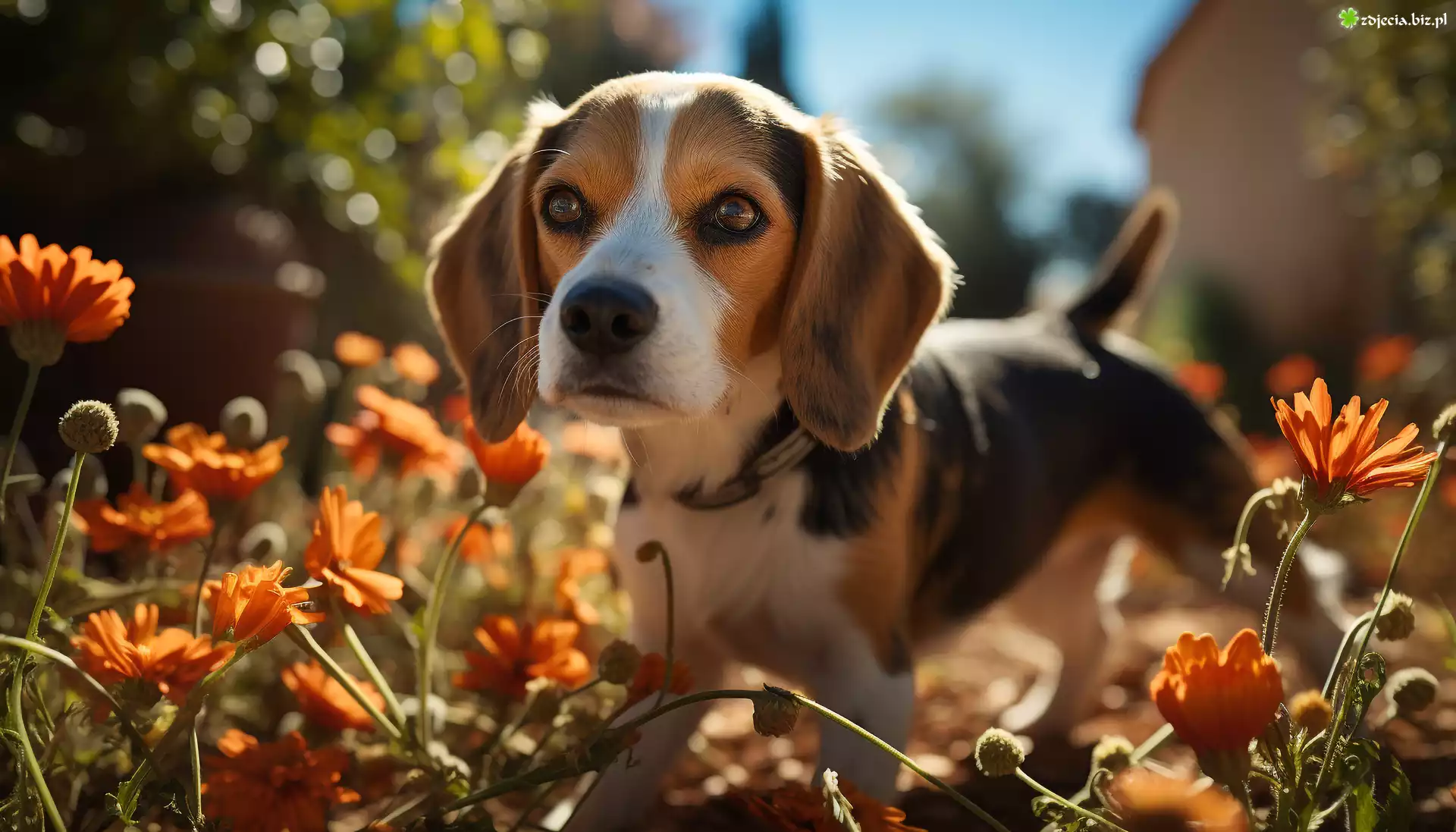Zdjęcie Beagle, Pies, Szczeniak, Kwiaty, Grafika