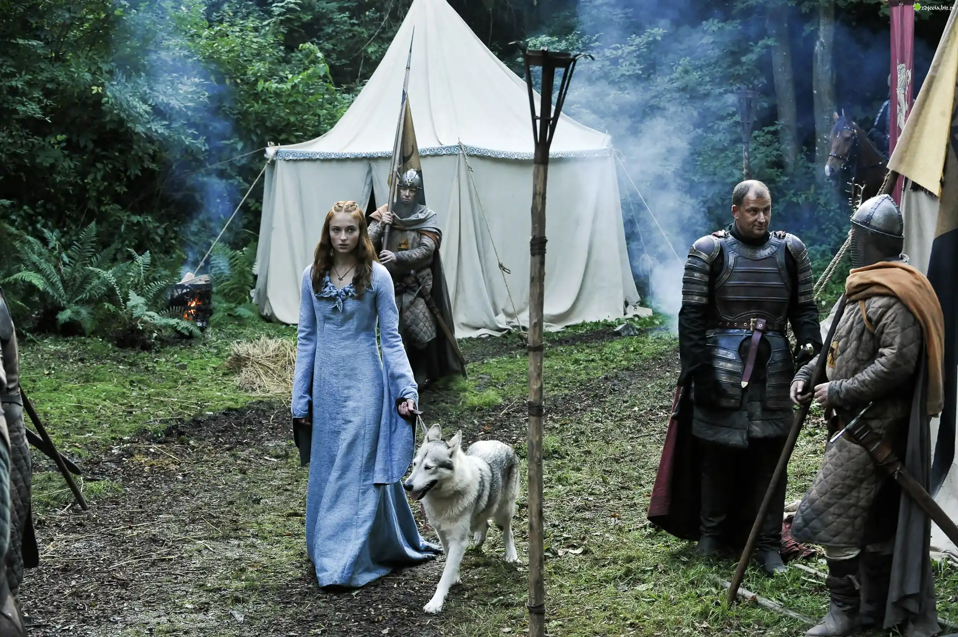 Zdjęcie Gra o tron, Game of Thrones, Sansa Stark - Sophie Turner, Rycerze, Pies