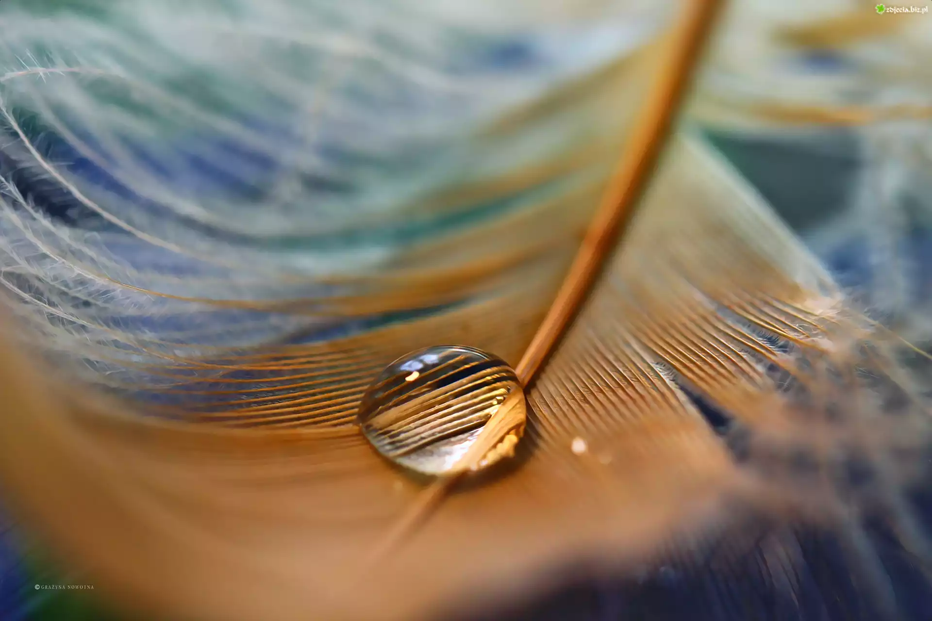 Zdjęcie Kropla, Piórko, Makro