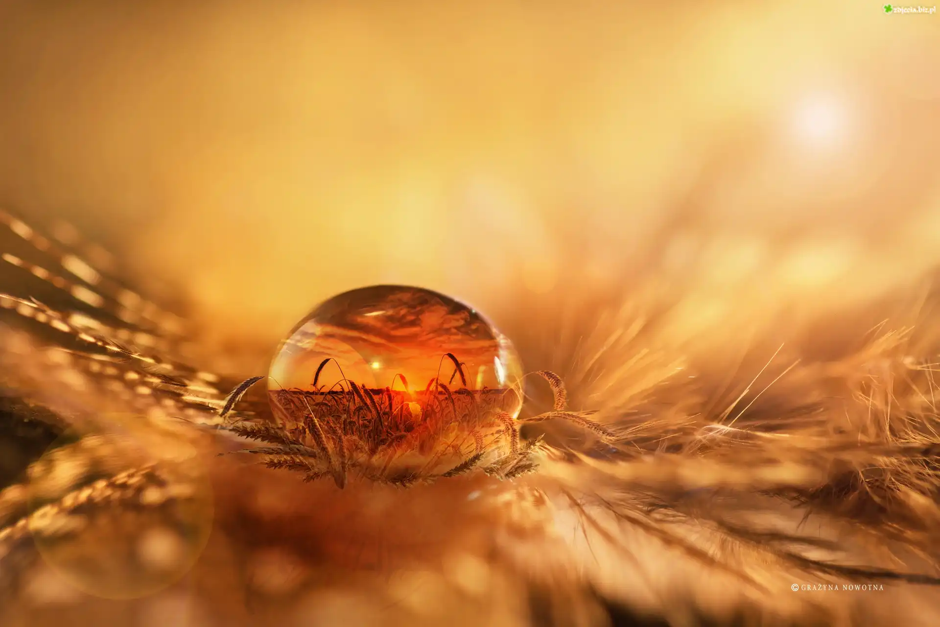 Zdjęcie, Piórko, Makro, Kropla, Zboże