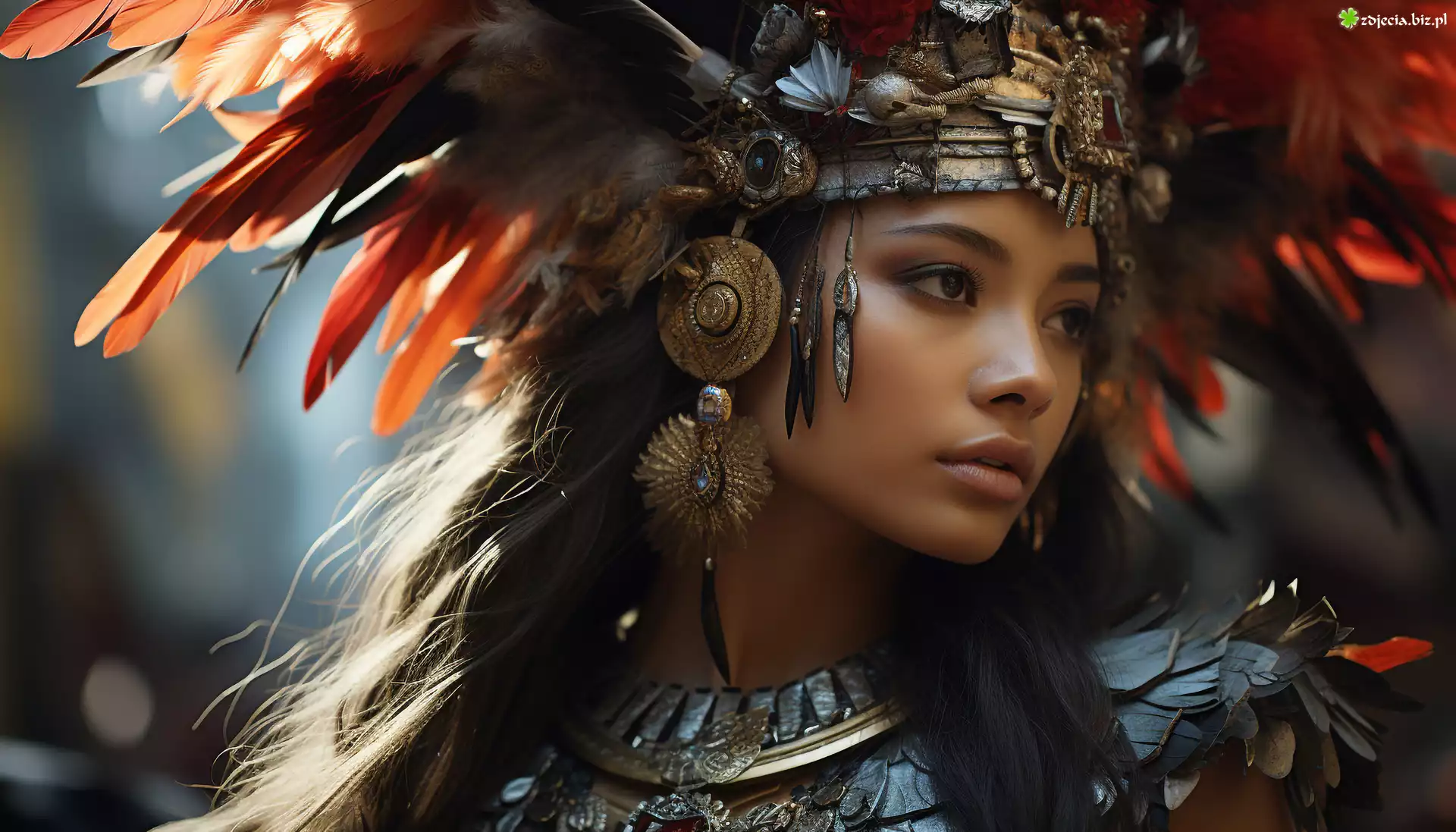 Zdjęcie Kobieta, Zbroja, Pióra, Pióropusz, Opaska, Grafika