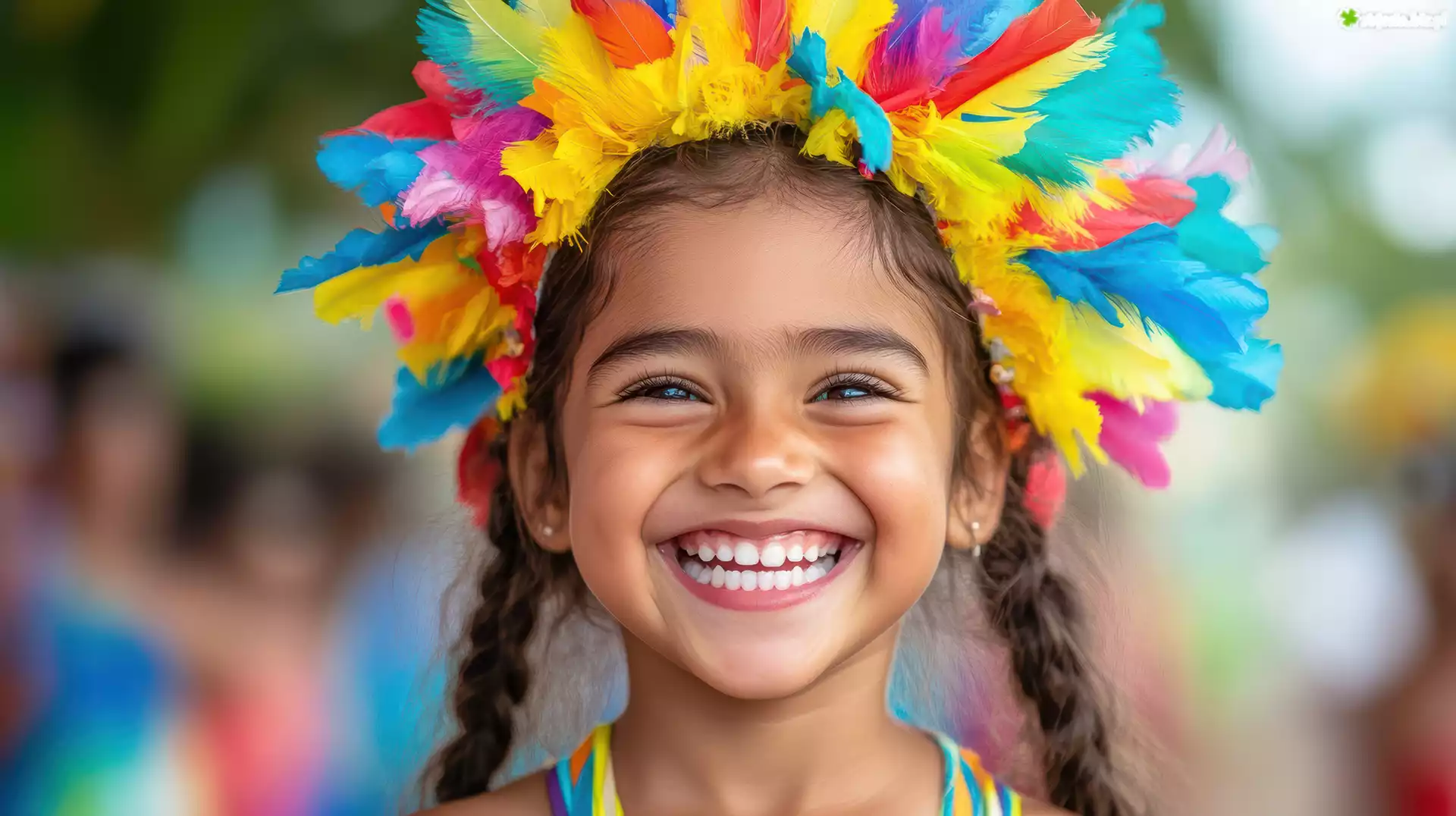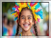 Zdjęcie Uśmiechnięta, Dziewczynka, Warkocze, Pióropusz