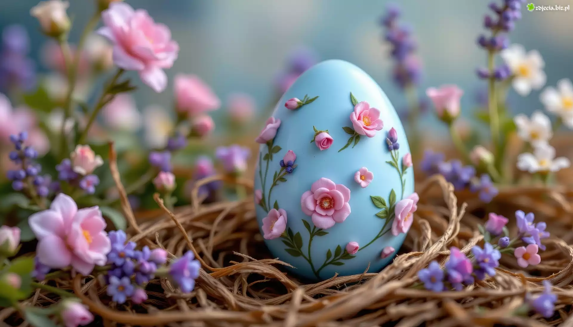 Zdjęcie Wielkanoc, Niebieskie, Jajko, Pisanka, Różowe, Róże