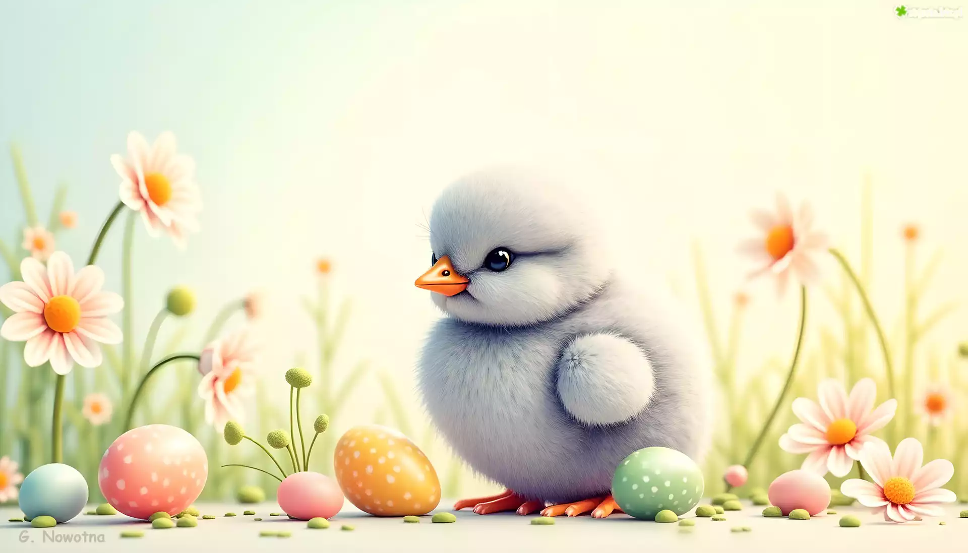 Zdjęcie Szary, Kurczak, Kwiaty, Pisanki, Wielkanoc, Grafika