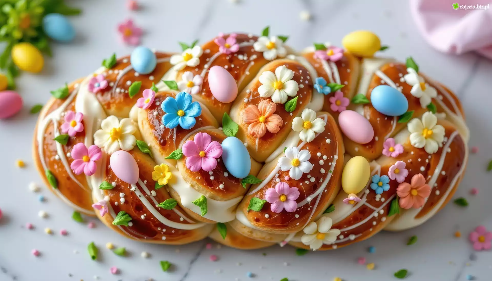 Zdjęcie Chleb, Kwiaty, Kolorowe, Pisanki, Wielkanoc, Grafika AI
