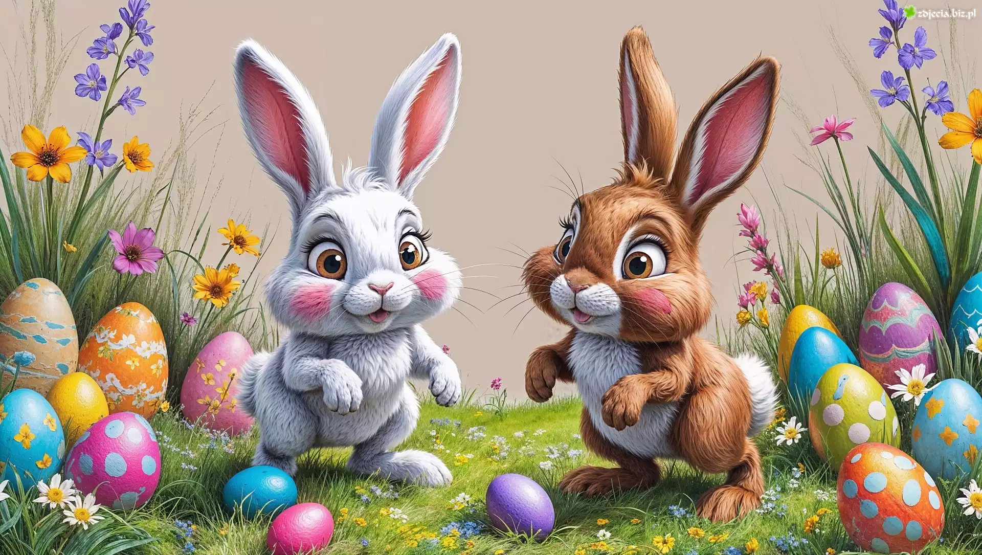 Zdjęcie, Wielkanoc, Pisanki, Kwiaty, Grafika, Króliki