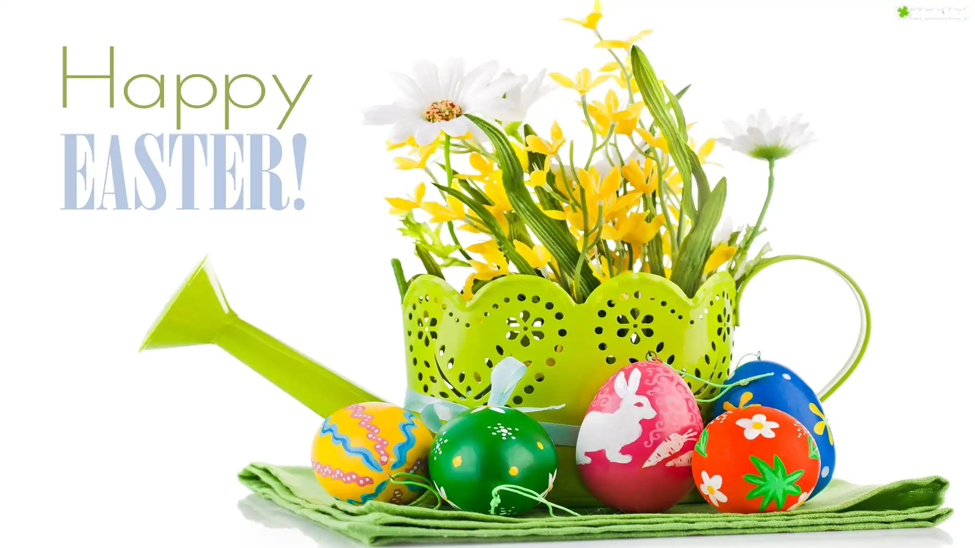 Zdjęcie Wielkanoc, Pisanki, Konewka, Kwiaty, Napis, Happy Easter