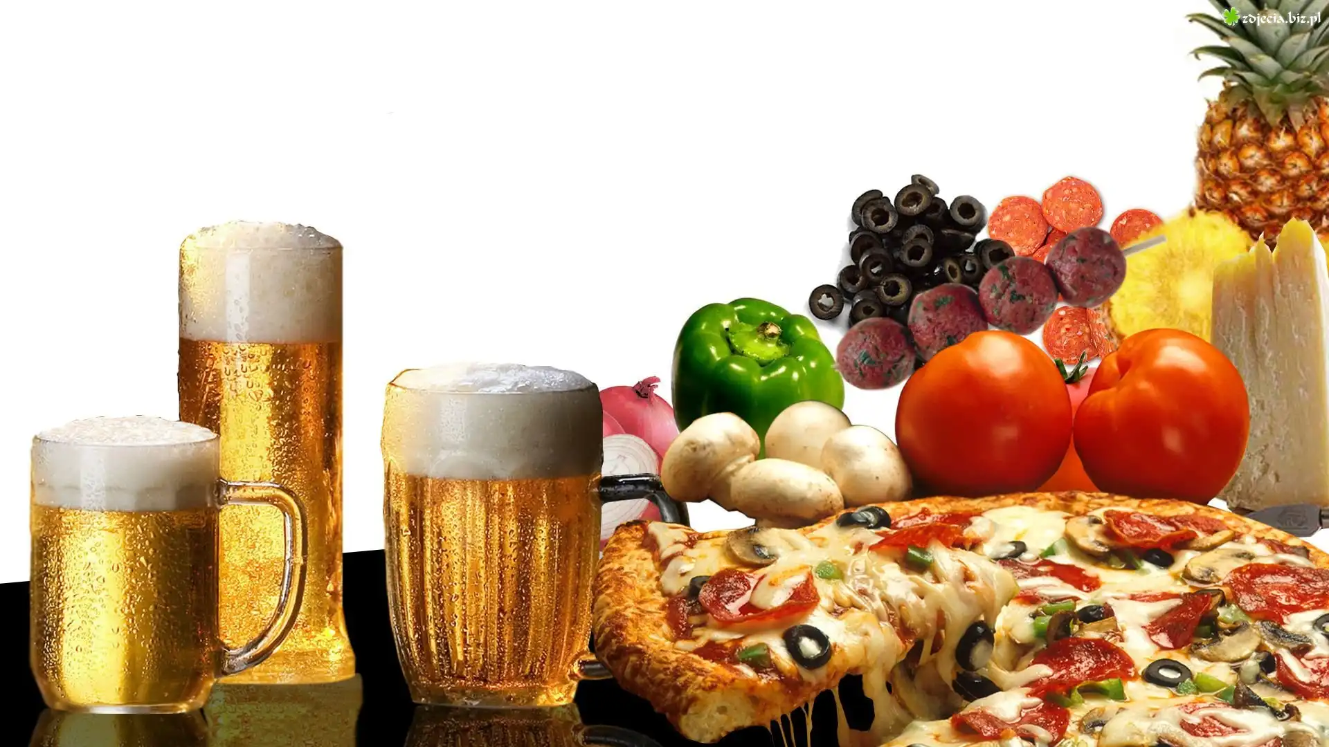 Zdjęcie Piwo, Pizza, Warzywa
