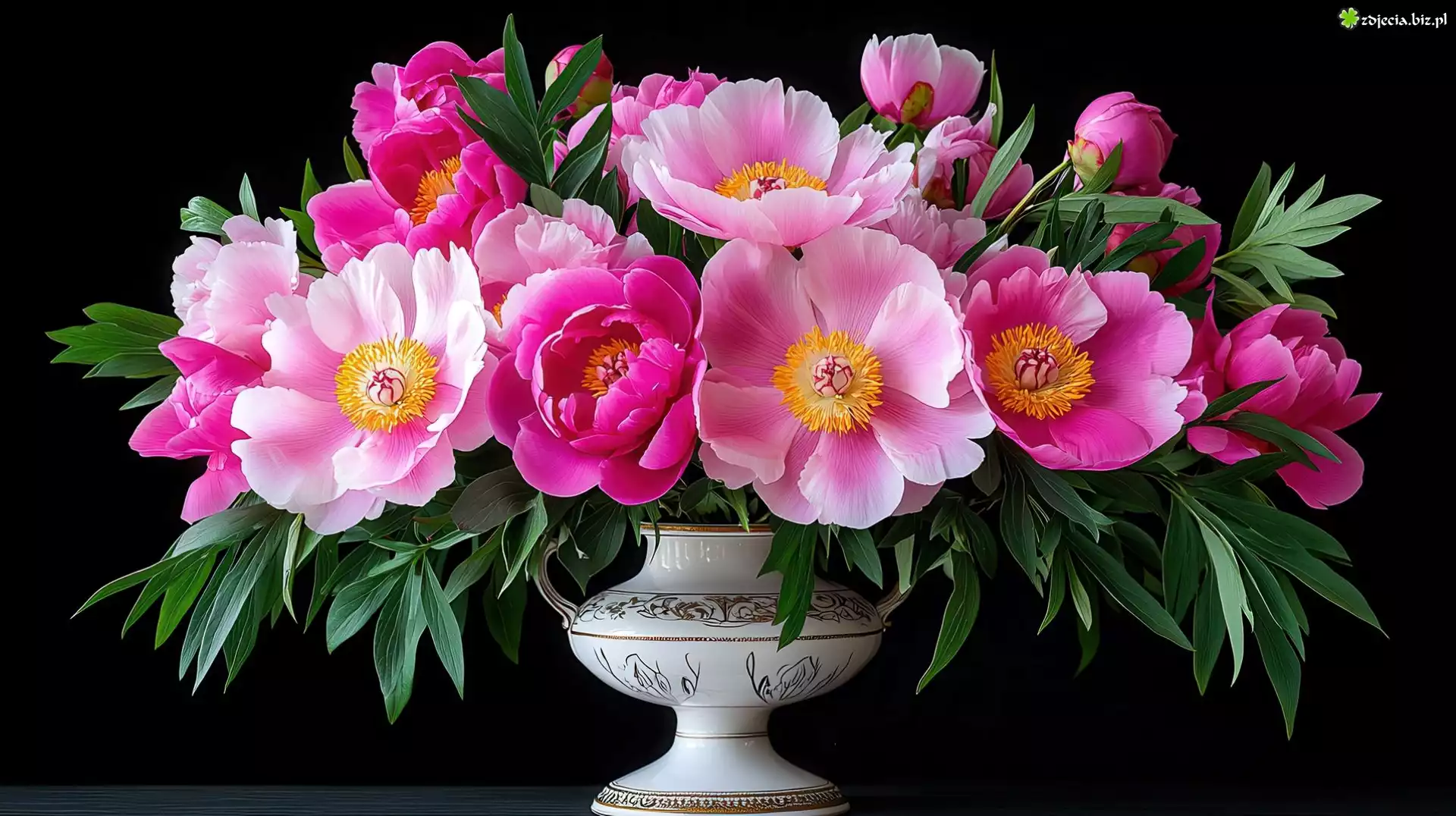 Zdjęcie Kwiaty, Piwonie, Różowe, Bukiet, Waza