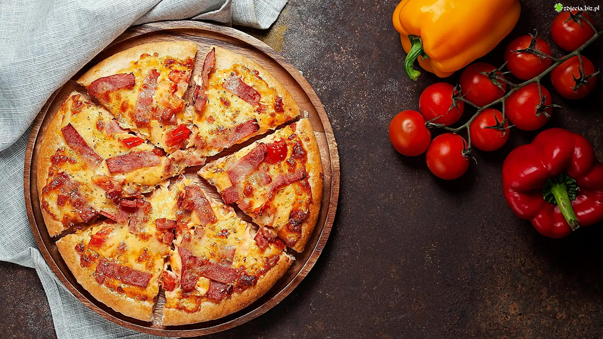 Zdjęcie Pizza, Pomidory, Papryka, Materiał