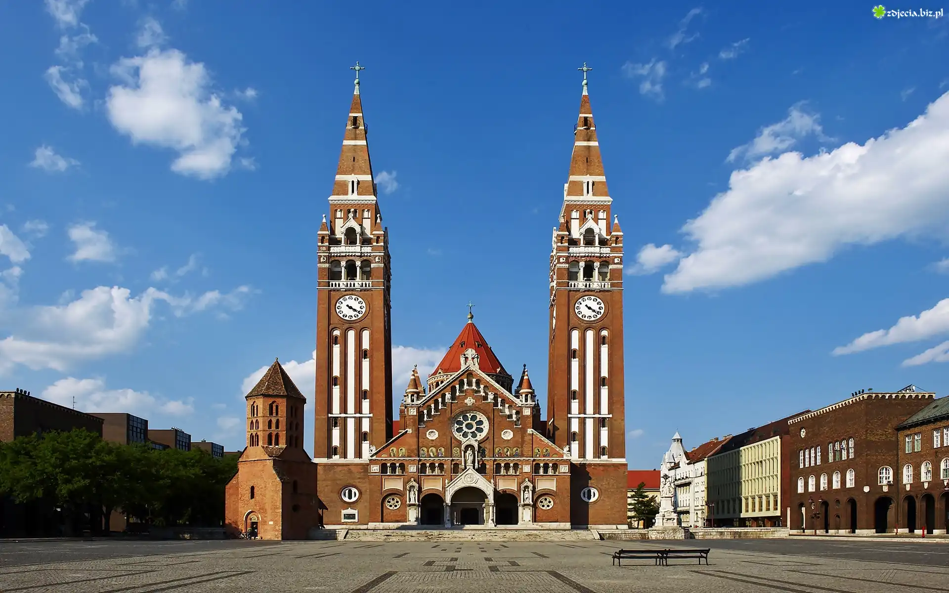 Zdjęcie Plac, Kościół, Budynki, Drzewa