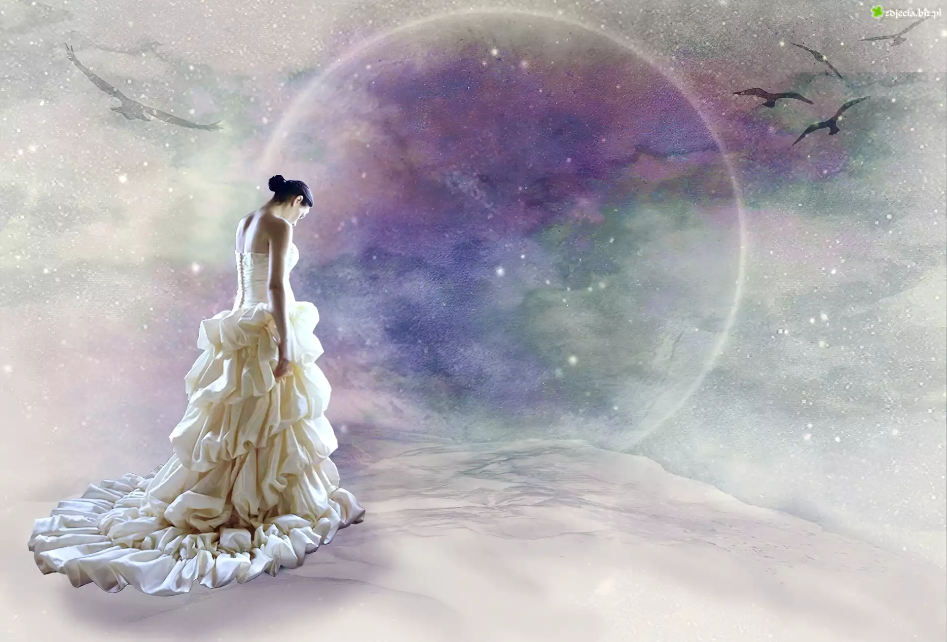 Zdjęcie, Kobieta, Planeta, Ptaki