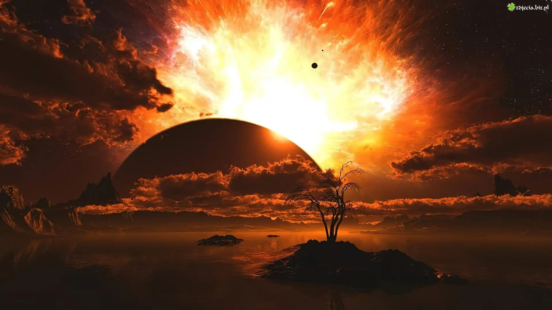 Zdjęcie Planeta, Wybuch, Wysepka, Chmury