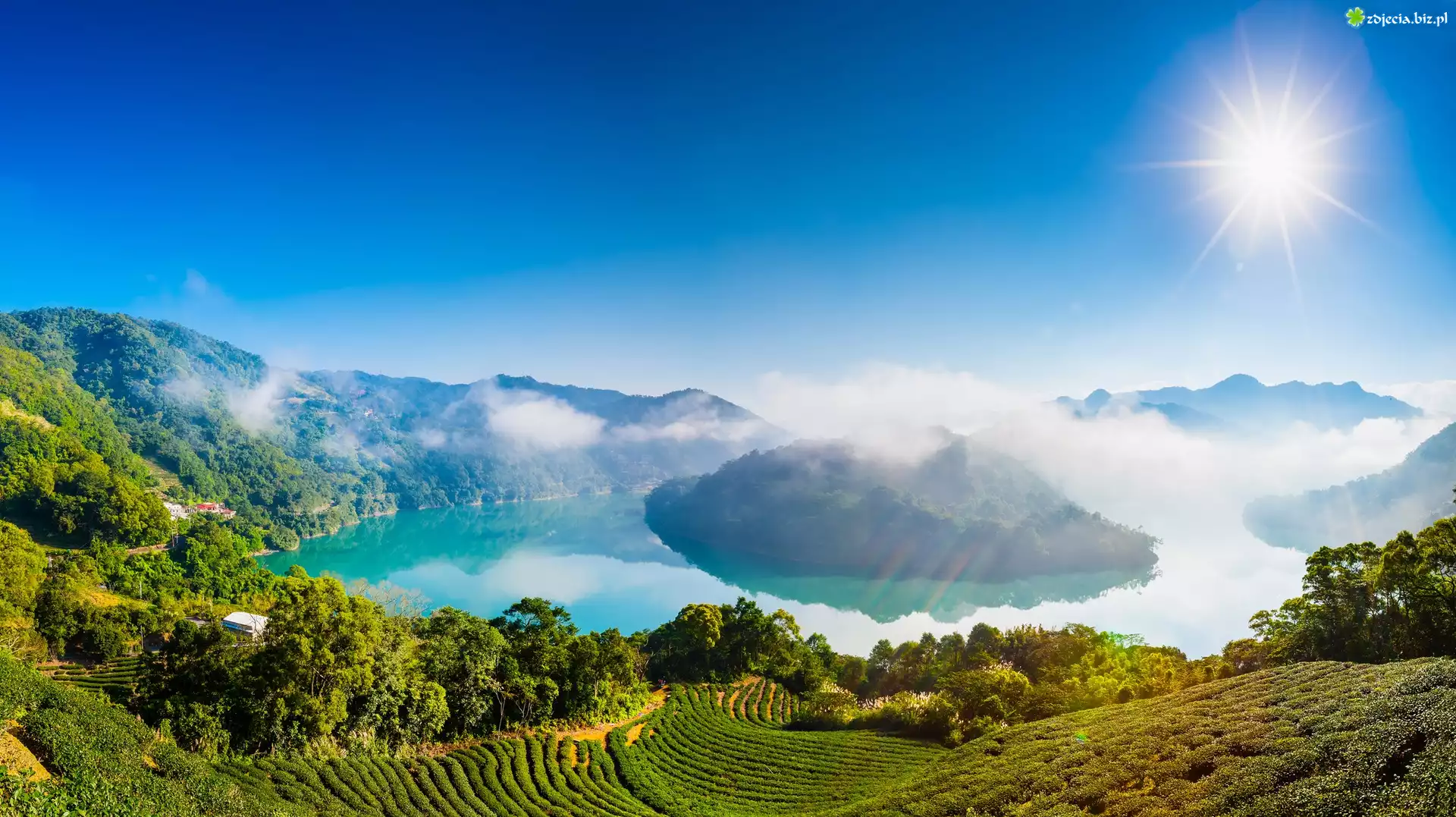 Zdjęcie Plantacja, Jezioro, Góry, Słońce, Krajobraz