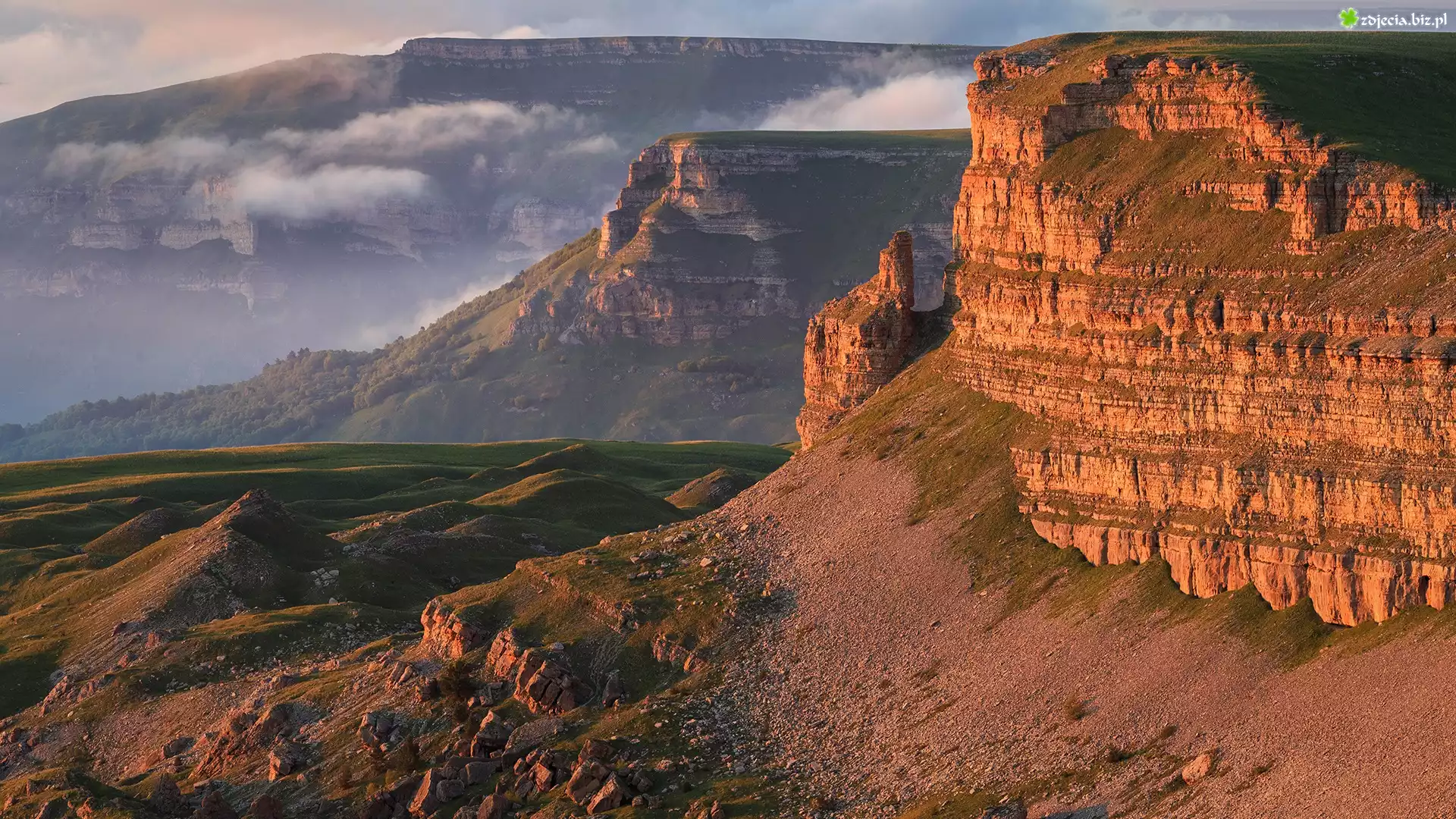 Zdjęcie Kaukaz, Góry, Pasmo Wielki Kaukaz, Płaskowyż Bermamyt, Urwiska, Republika Karaczajo-Czerkiesja, Rosja |