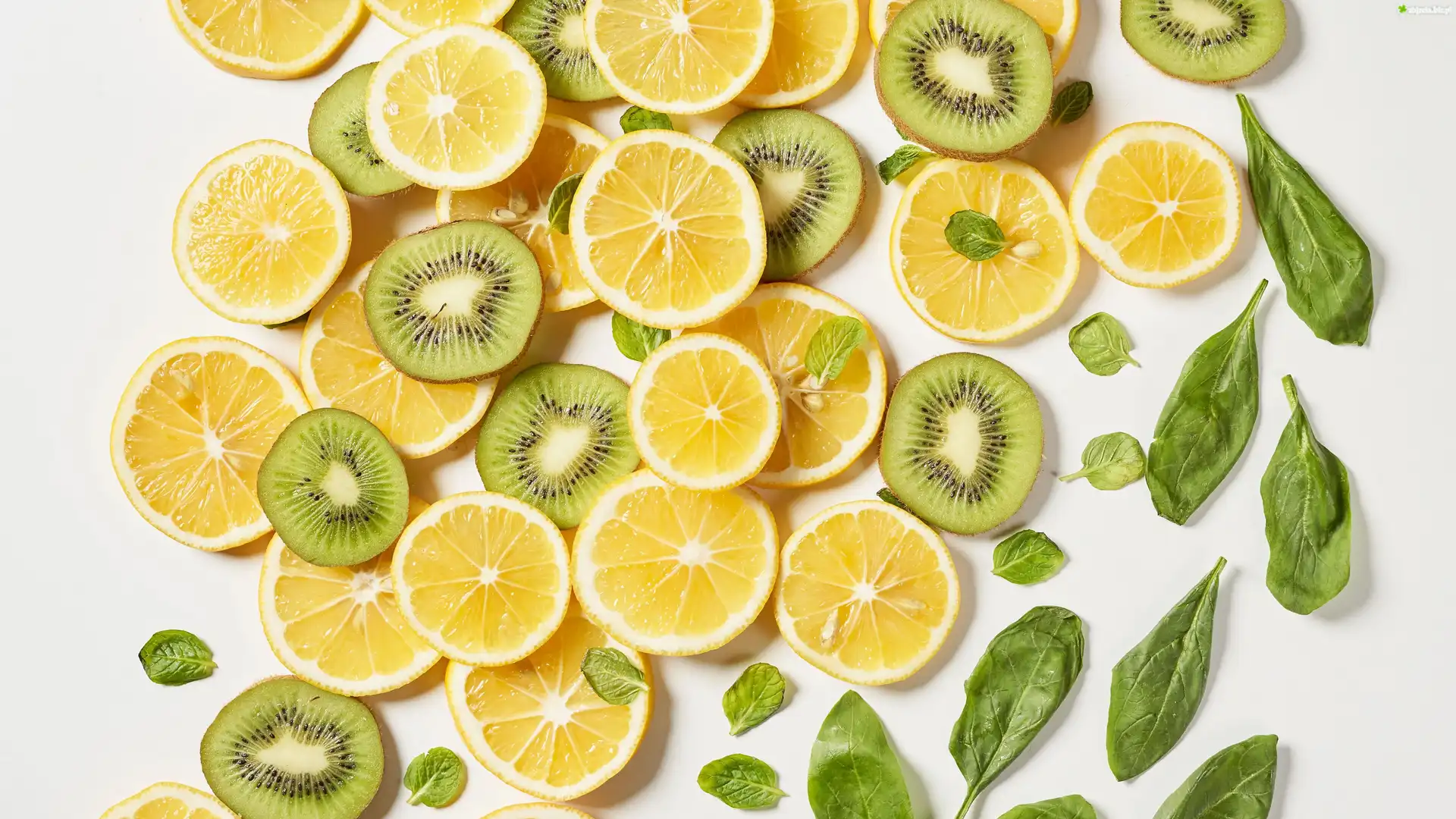 Zdjęcie, Plasterki, Cytryny, Kiwi, Listki