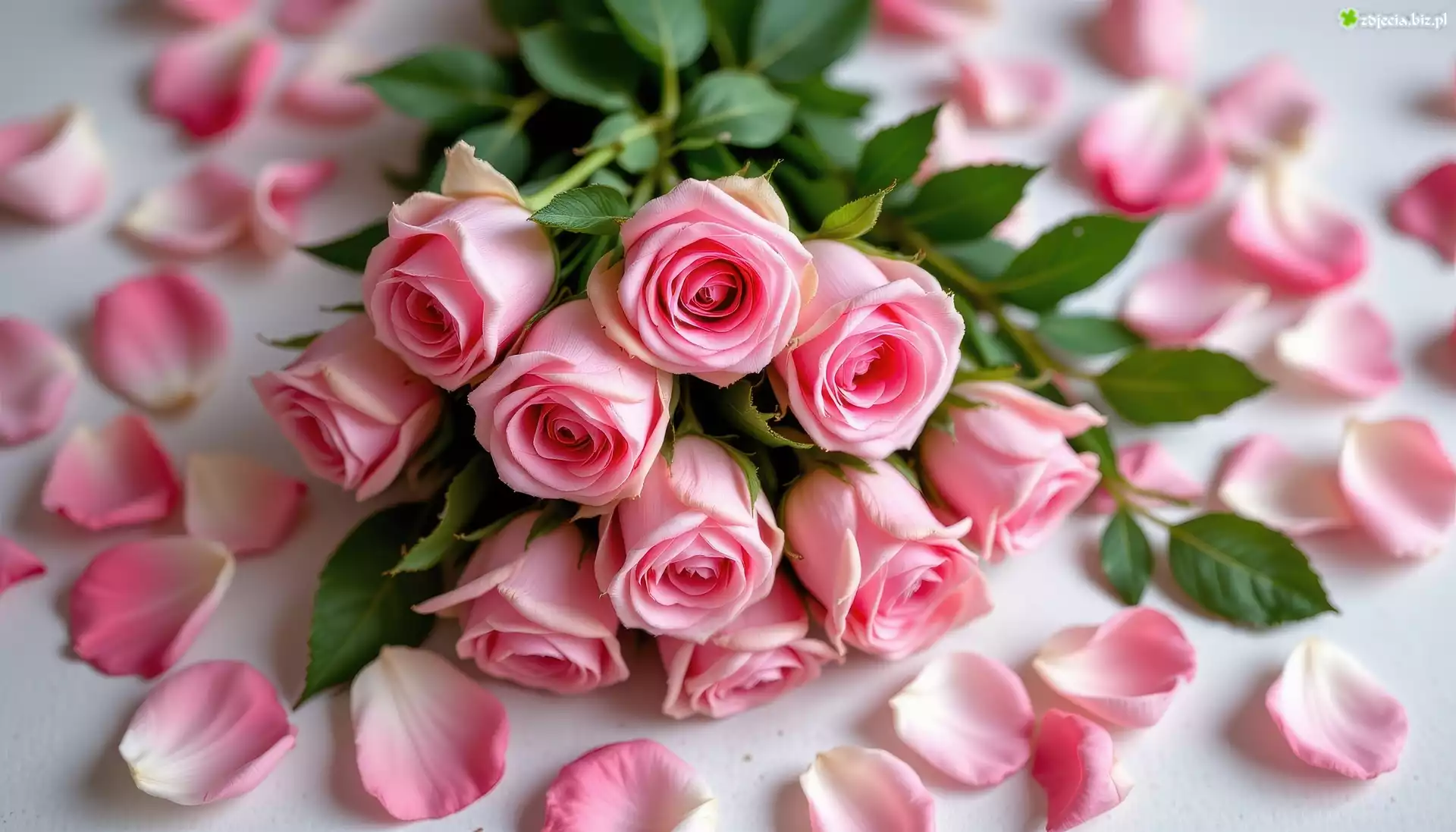 Zdjęcie Wiązanka, Różowe, Róże, Płatki
