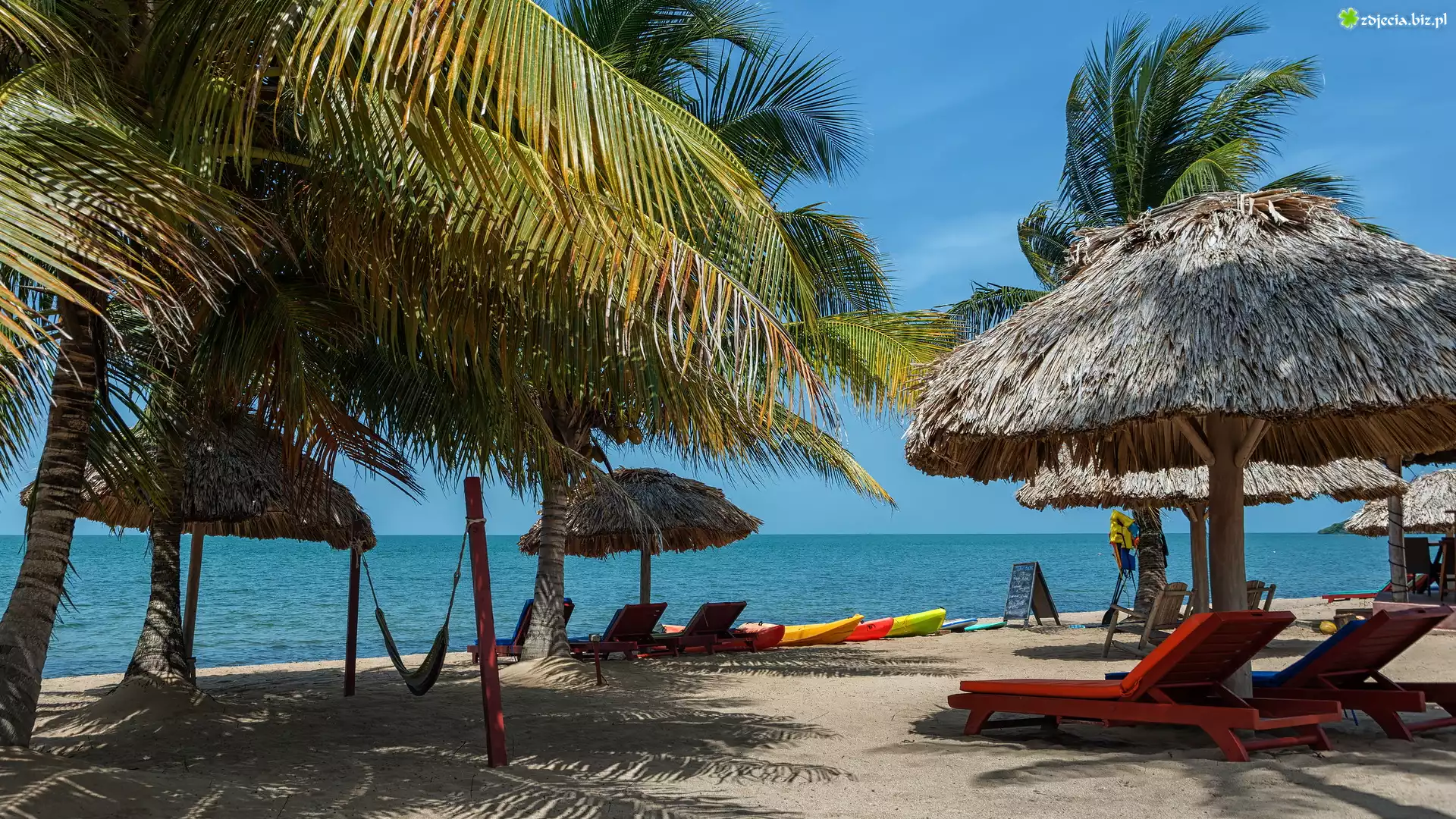 Zdjęcie Plaża, Palmy, Parasole, Leżaki, Morze