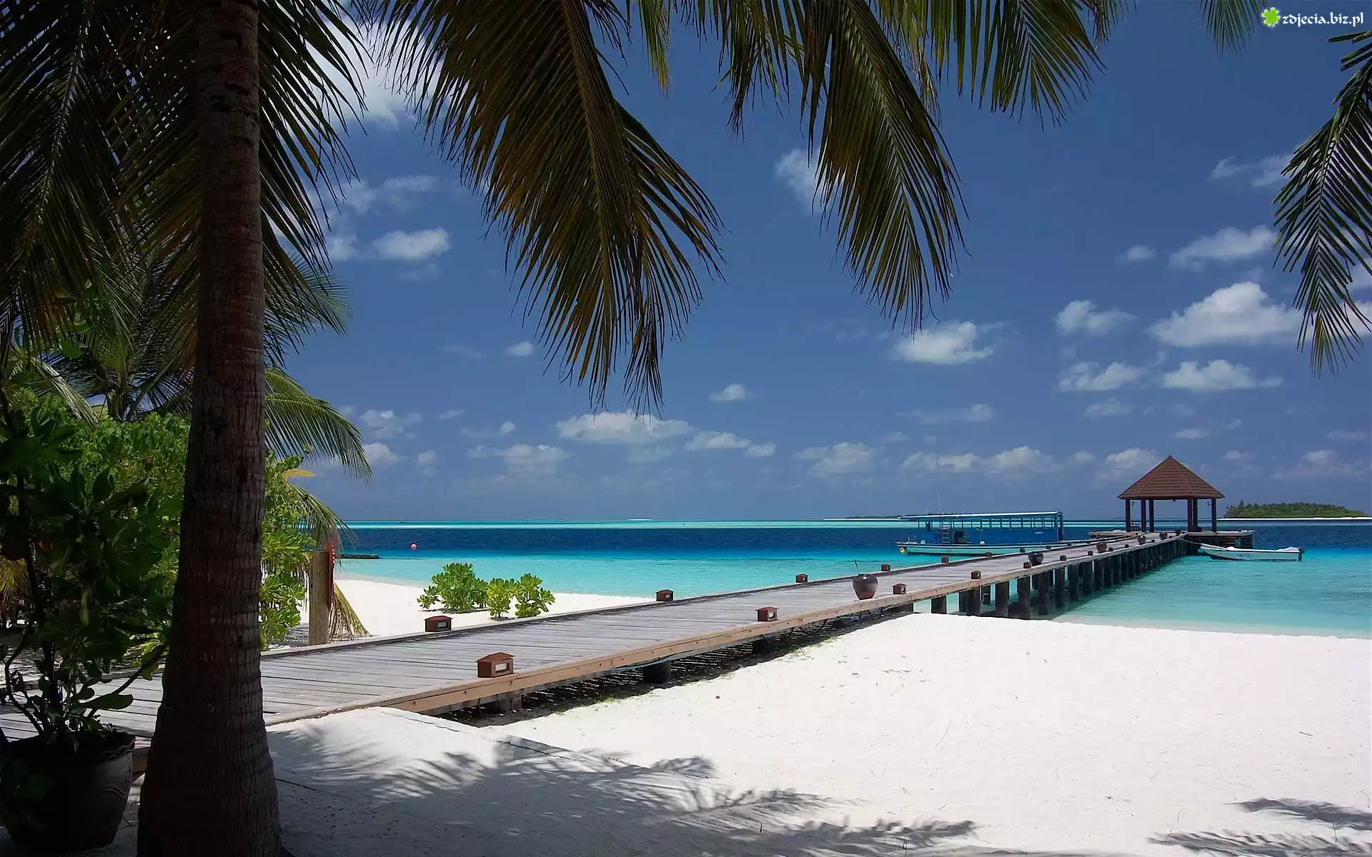 Zdjęcie Plaża, Pomost, Morze, Niebo, Łódki