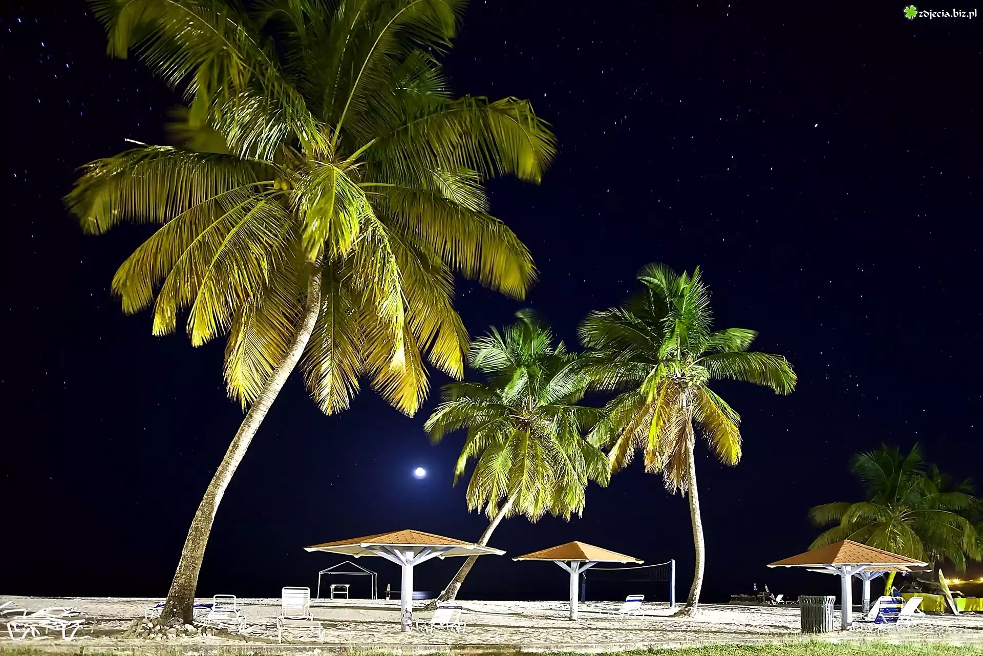 Zdjęcie Plaża, Palmy, Noc, Tropiki