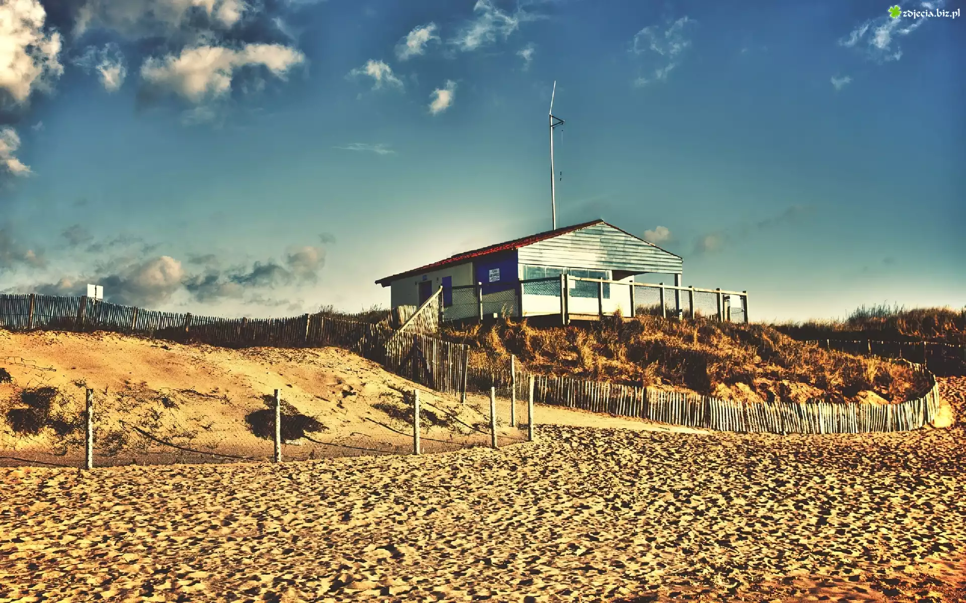 Zdjęcie Plaża, Piasek, Ogrodzenia, Domek