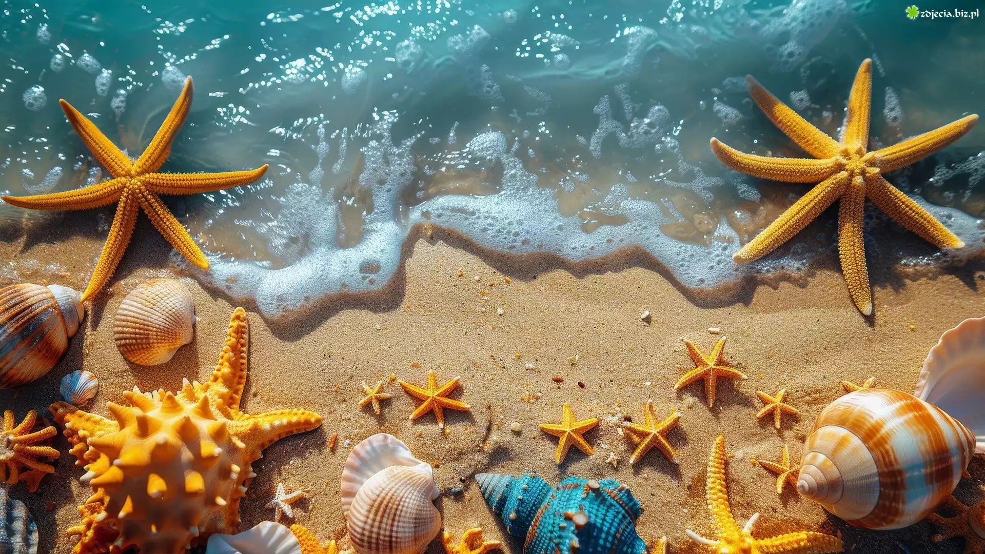 Zdjęcie Morze, Plaża, Piasek, Muszle, Rozgwiazdy