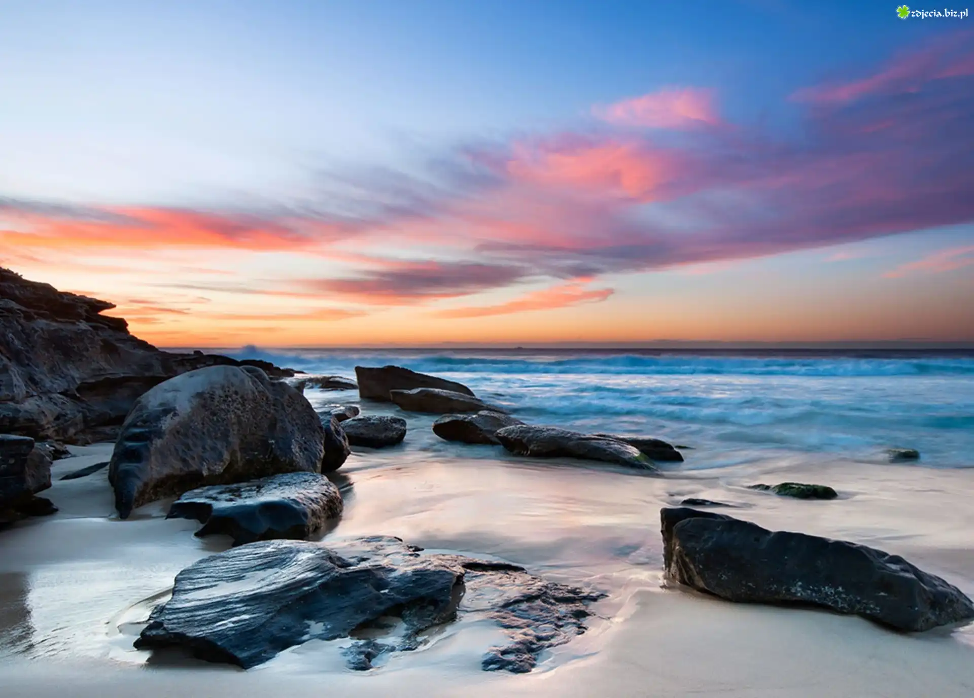 Zdjęcie Plaża, Chmury, Skały, Piasek, Woda