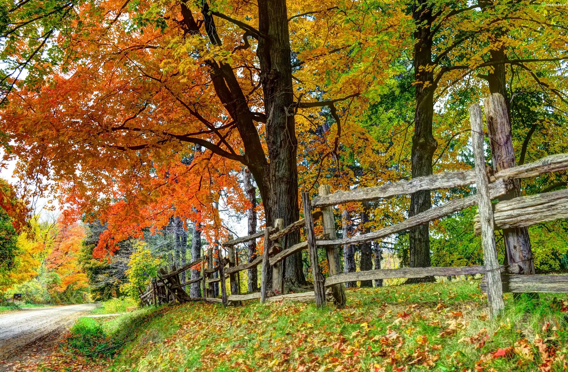 Zdjęcie, Płot, Jesień, Drzewa, Droga