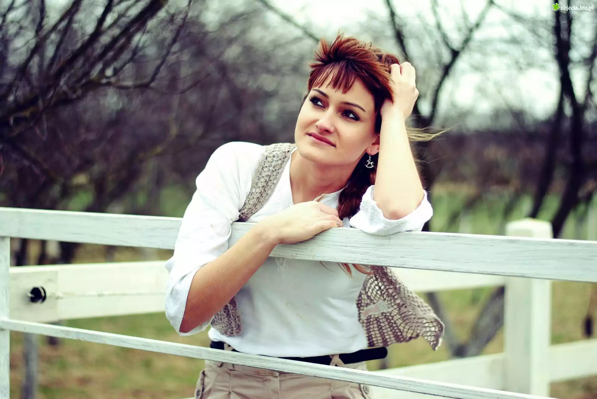 Zdjęcie Kobieta, Płot, Drzewa