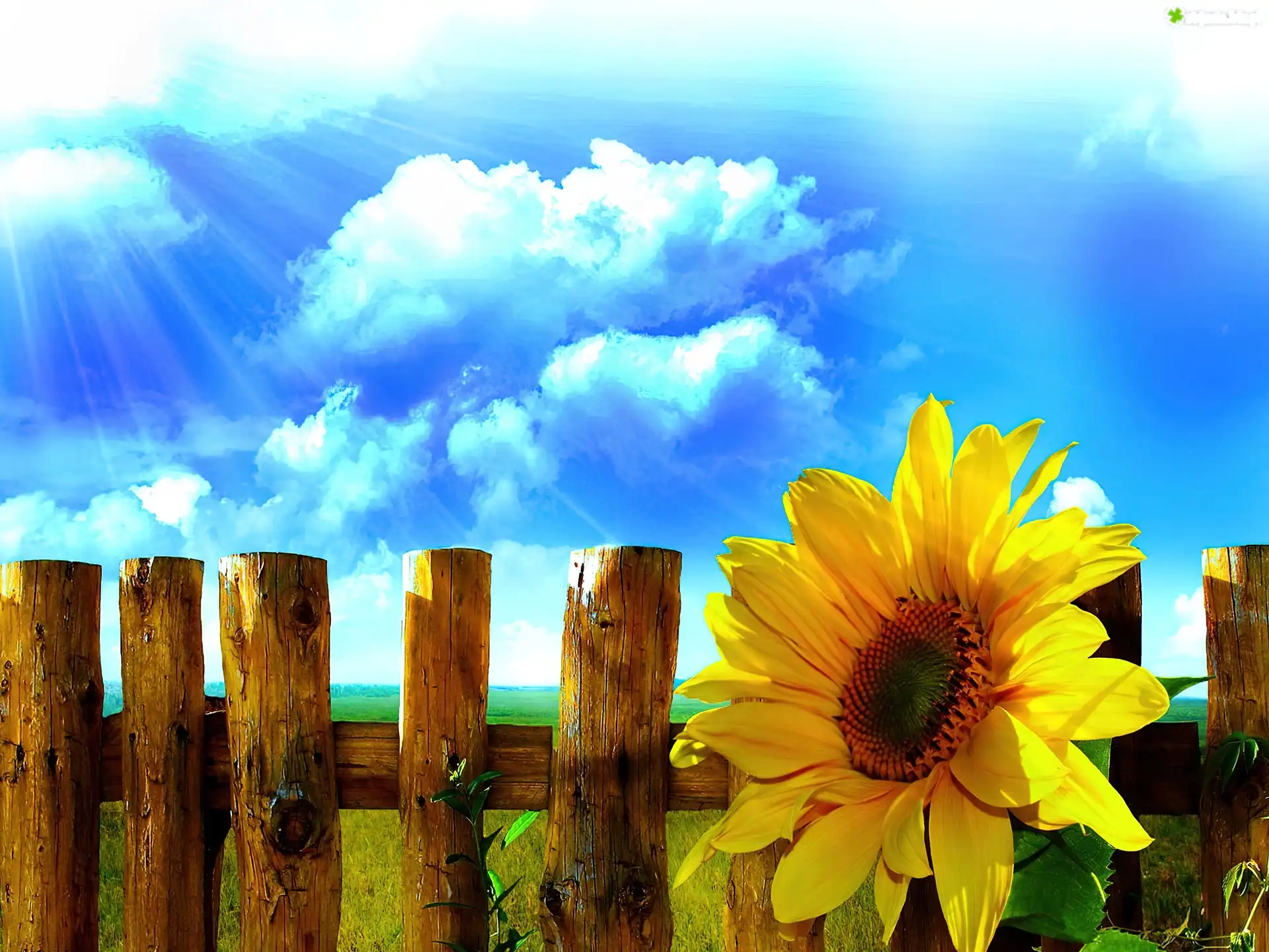 Zdjęcie Słonecznik, Płot, Niebo