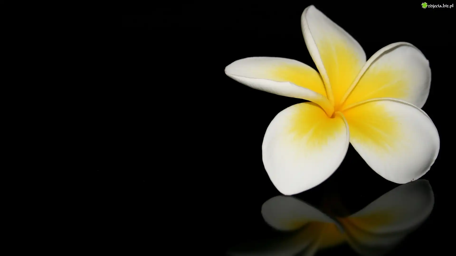 Zdjęcie Kwiat, Plumeria, Biało-żółta, Odbicie, Ciemne, Tło