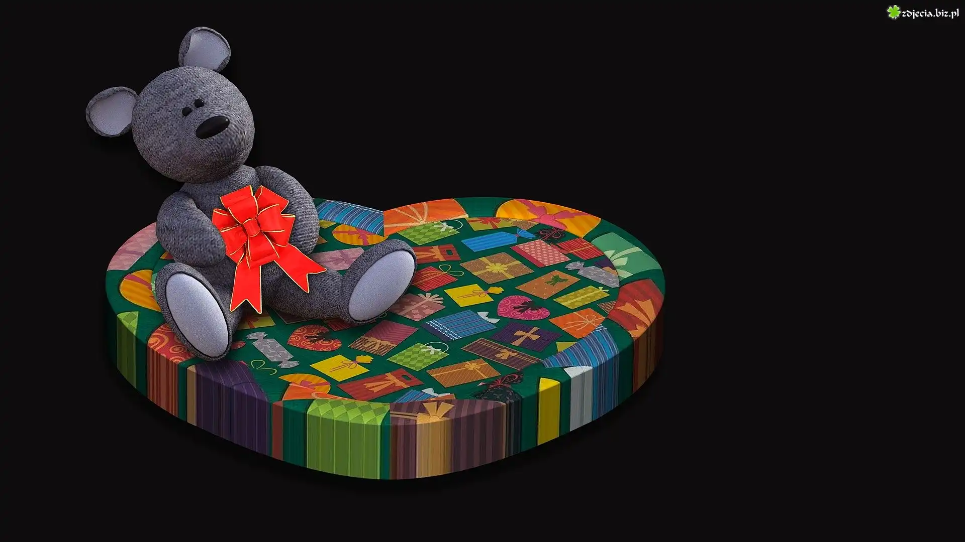 Zdjęcie Pluszowy, Miś, Wstążka, Serce, Ciemne, Tło