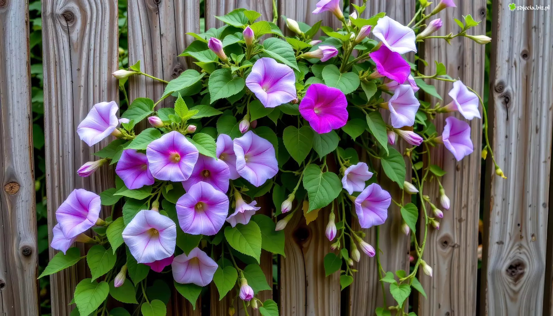 Zdjęcie, Powój, Pnącze, Deski, Grafika AI