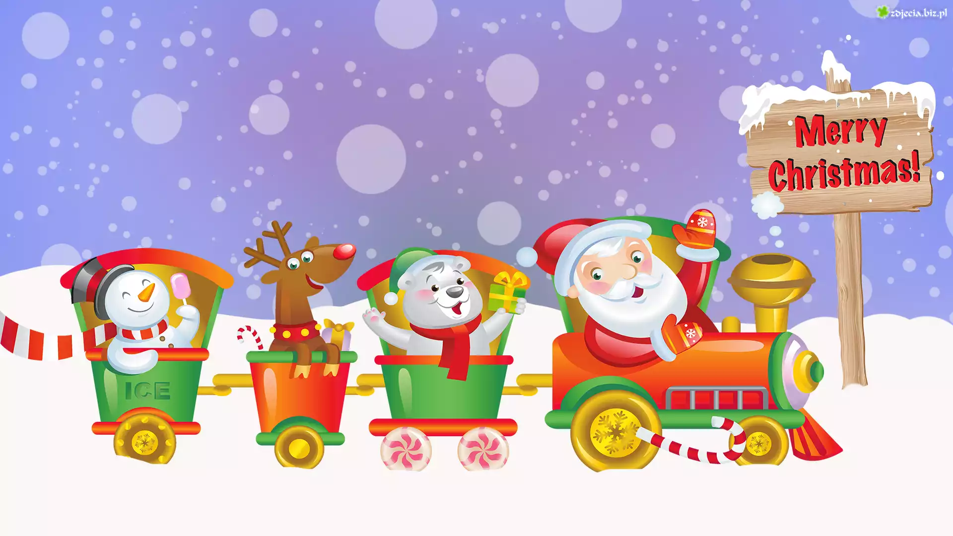 Zdjęcie Świąteczne, Boże Narodzenie, Napis, Merry Christmas, Mikołaj, Pociąg