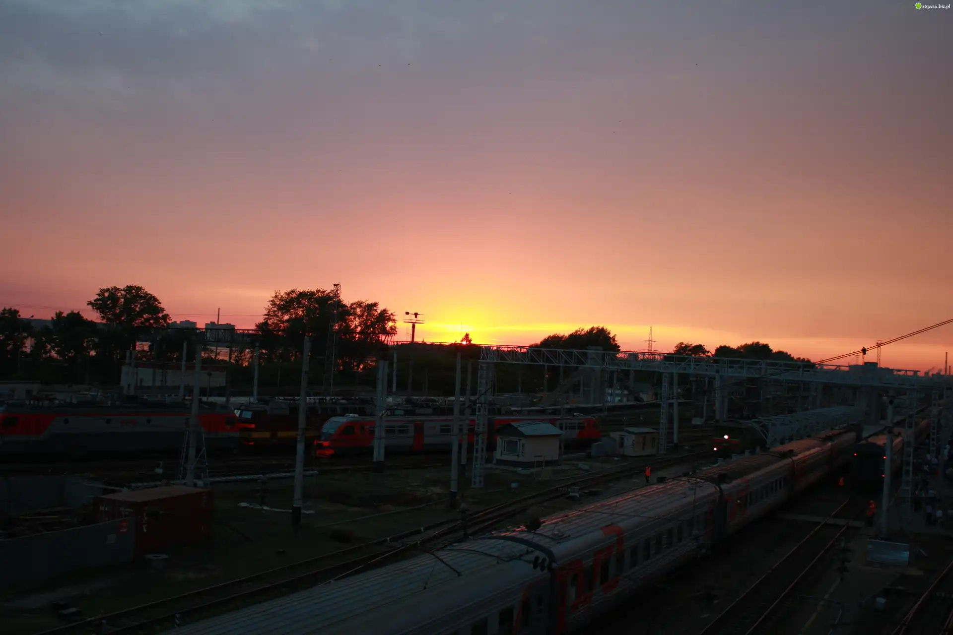 Zdjęcie, Pociągi, Zachód Słońca, Kolej