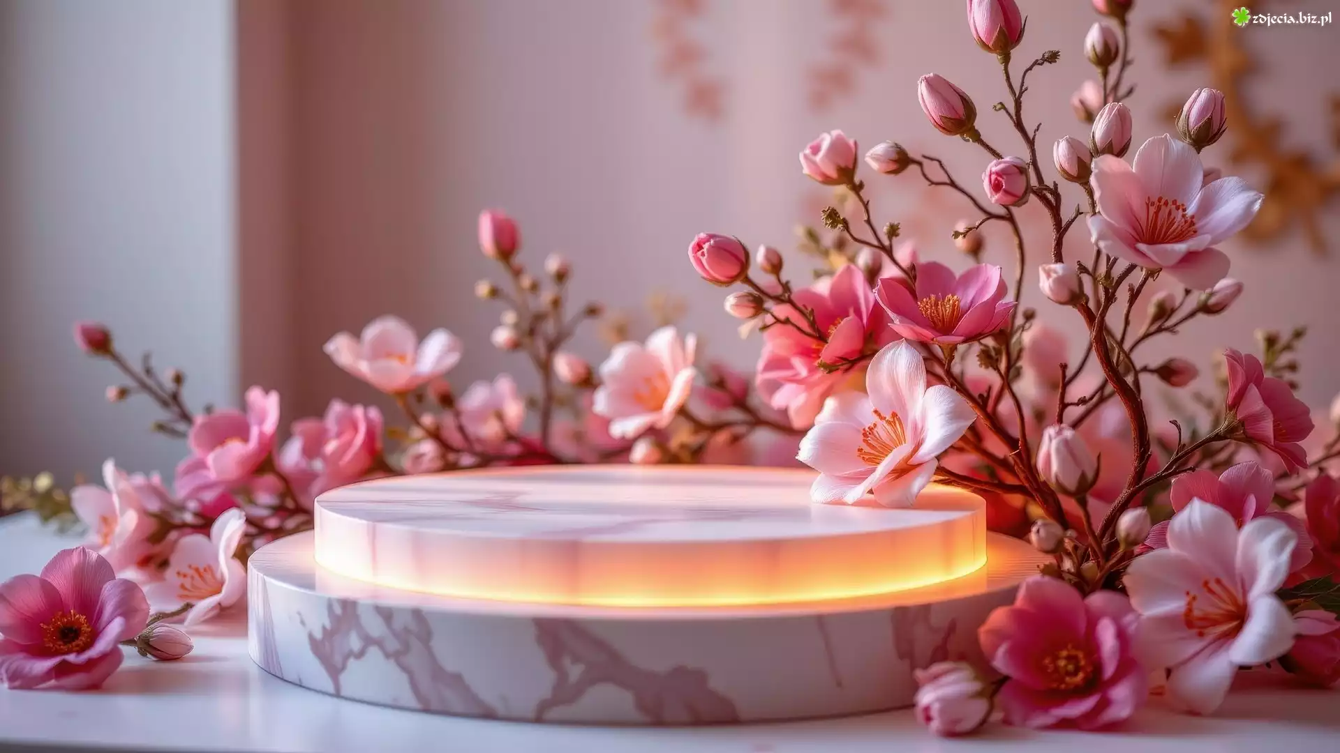 Zdjęcie Podświetlone, Podium, Różowe, Kwiaty, Pąki