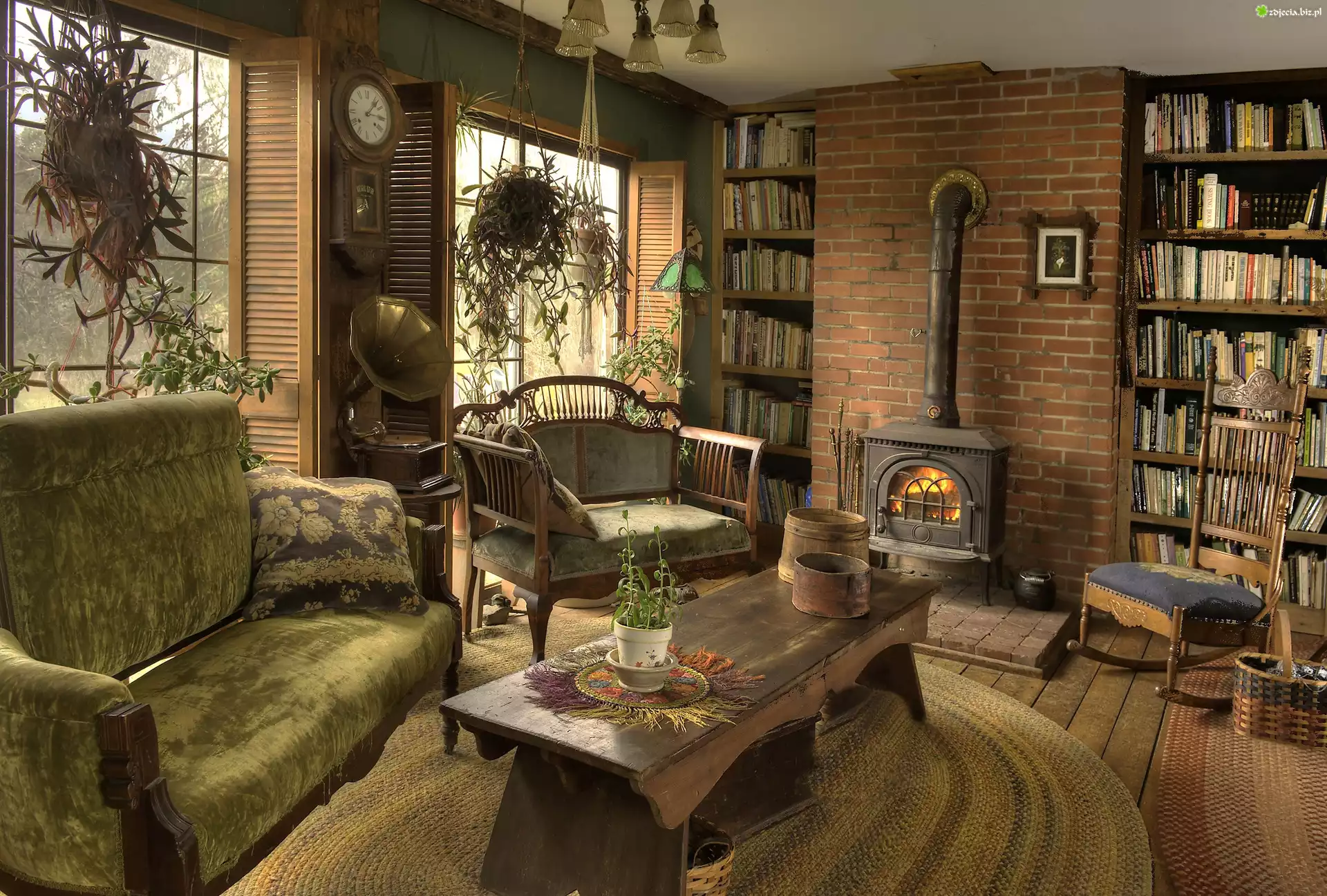 Zdjęcie, Pokój, Kominek, Regał, Książki
