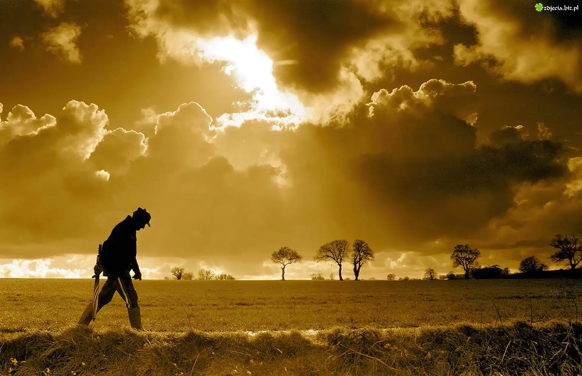 Zdjęcie, Chmury, Pola, Mężczyzna