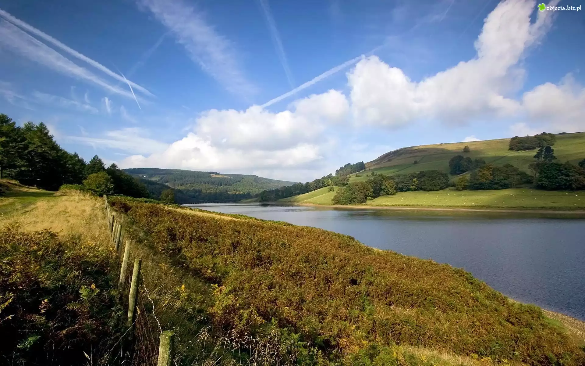 Zdjęcie Pola, Rzeka, Drzewa, Chmury