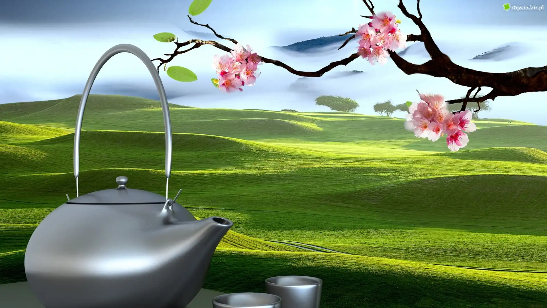 Zdjęcie Grafika, Pola, Łąki, Drzewo, Owocowe, Gałązka, Czajnik, Imbryk