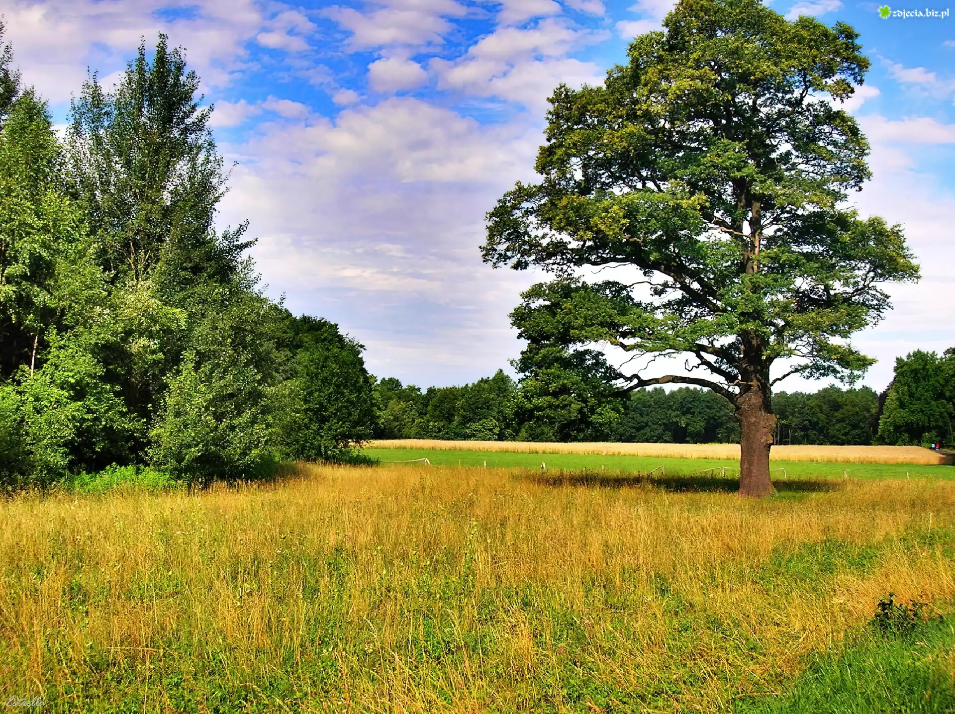 Zdjęcie Drzewa, Polana, Chmury