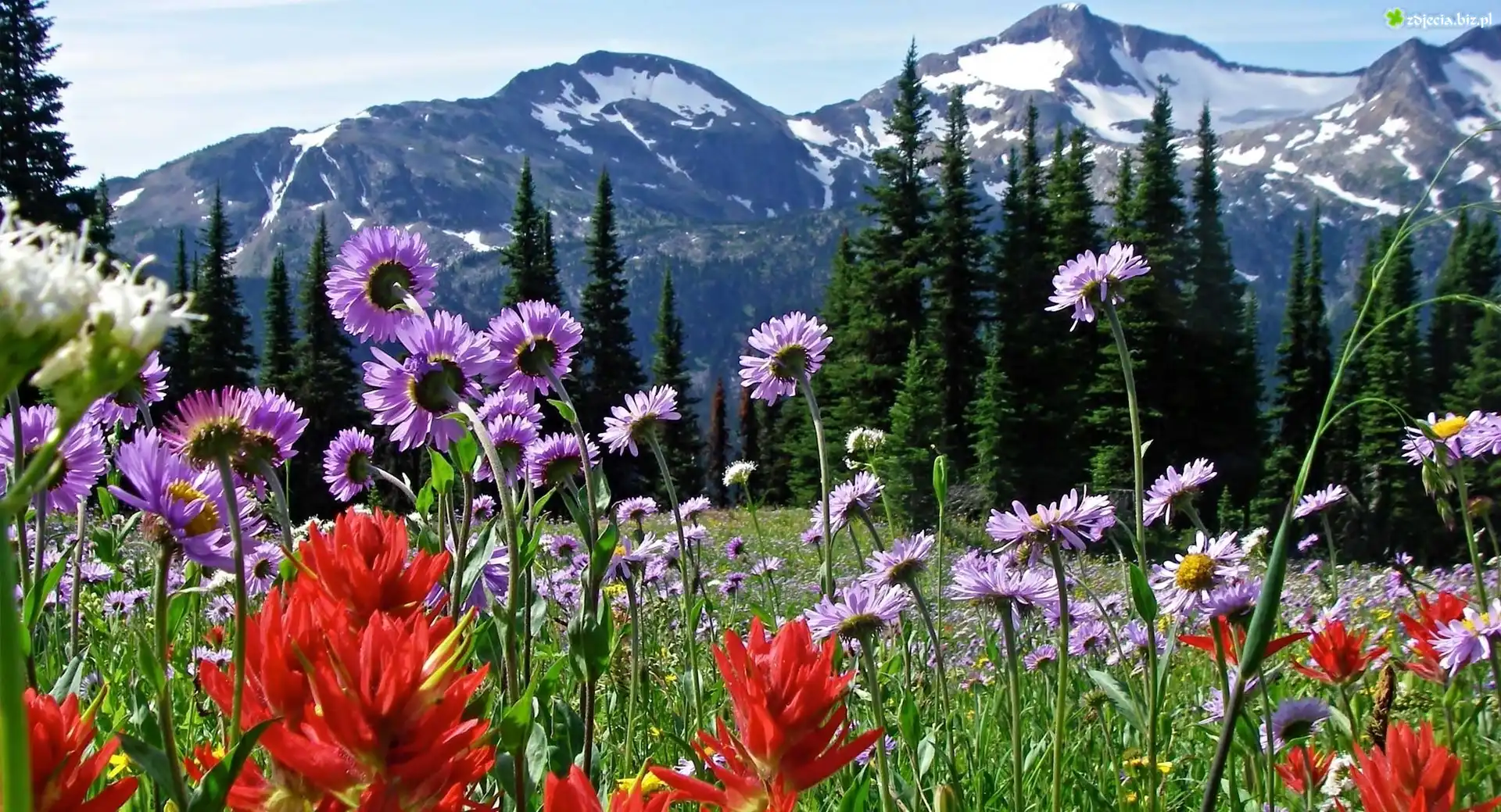 Zdjęcie Polana, Kwiaty, Góry, Lasy, Wiosna