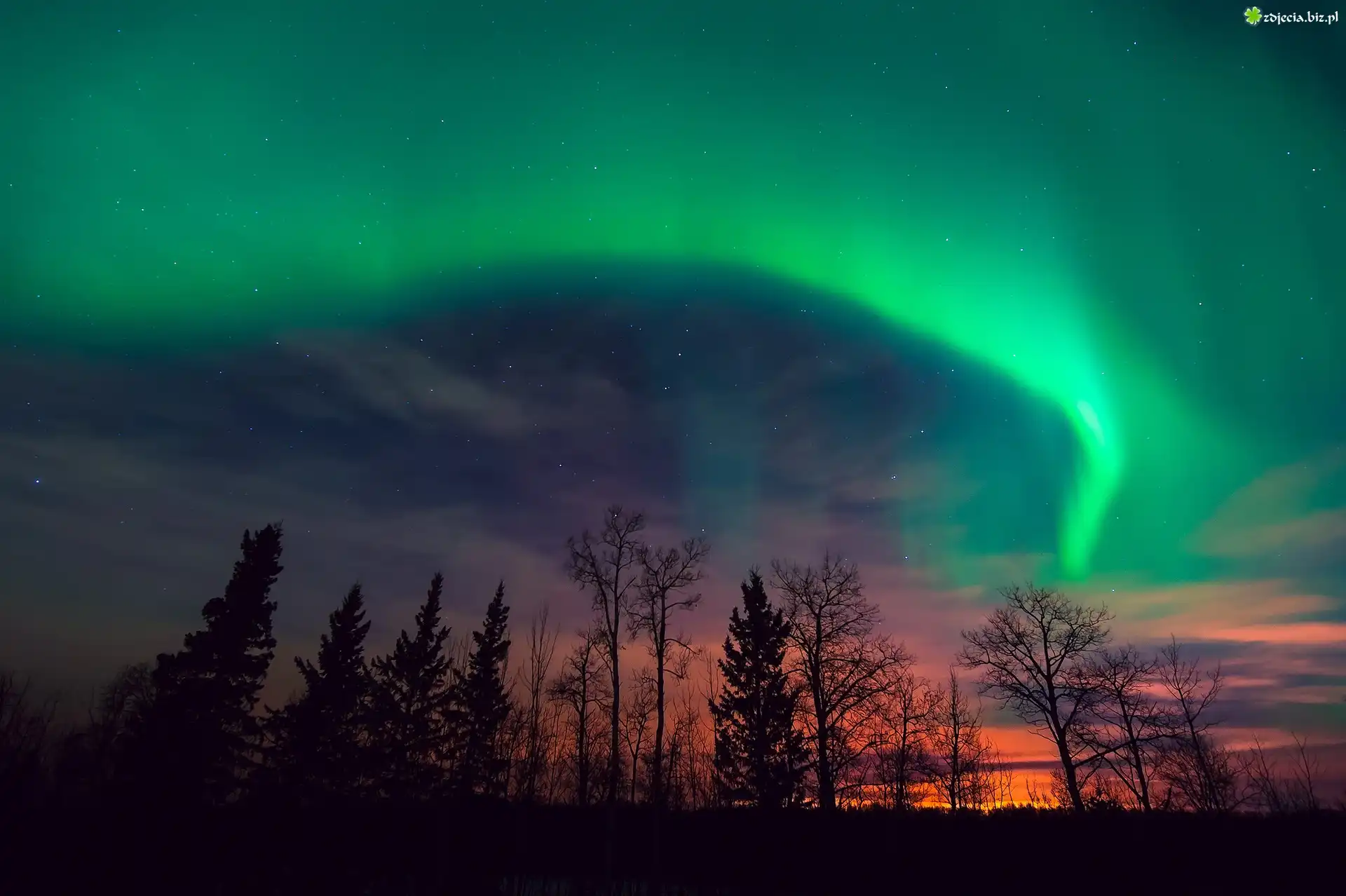 Zdjęcie Zorza, Polarna, Drzewa
