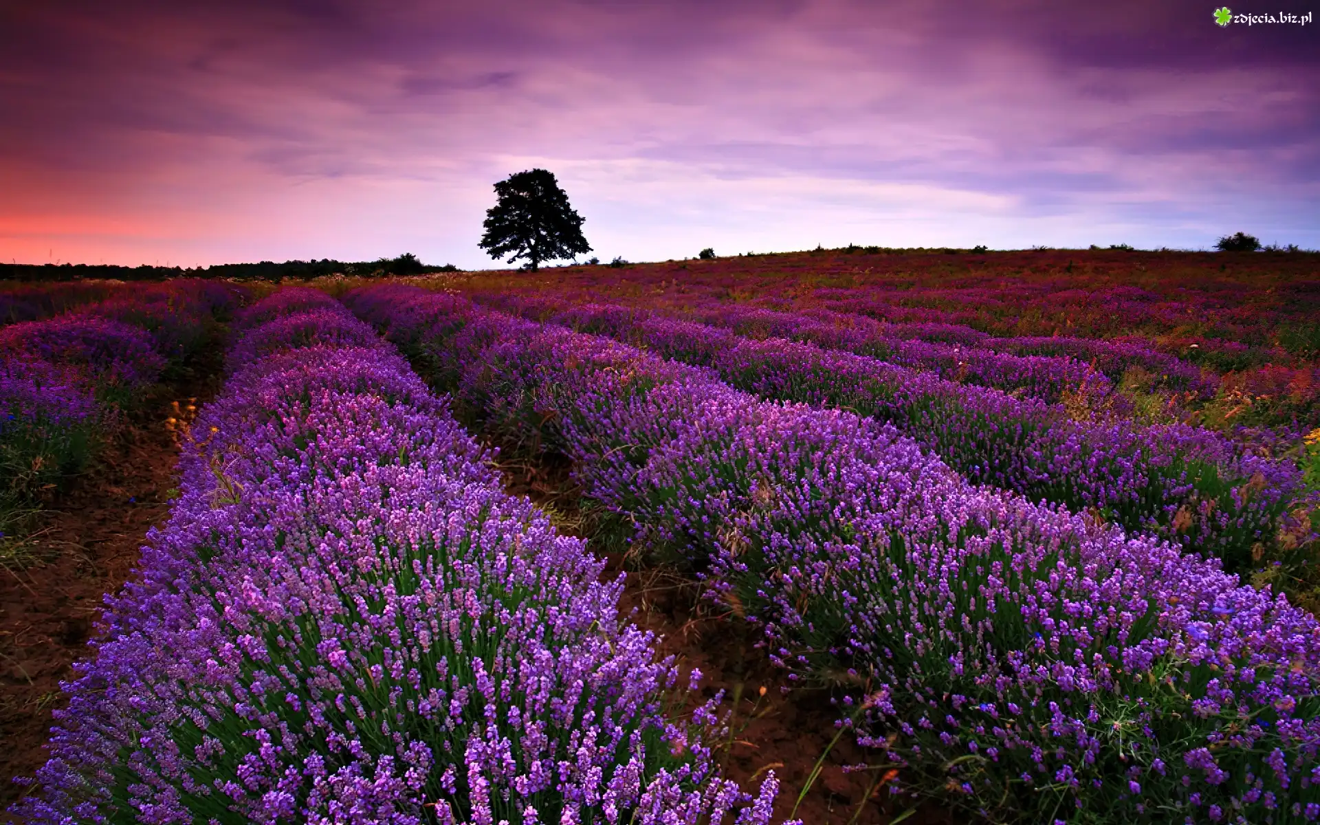 Zdjęcie Lawendowe, Pole, Drzewo